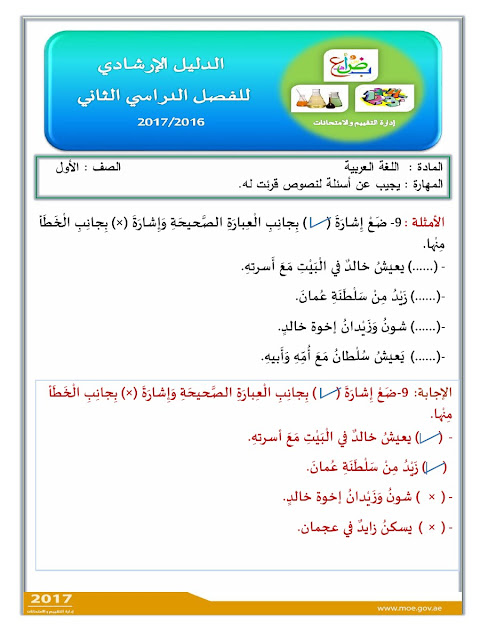 معلومات الملف: الصف الأول, ـــالفصل الثاني, لغة عربية, الدليل الإرشادي لامتحان نهاية الفصل الثاني 2017 | ||