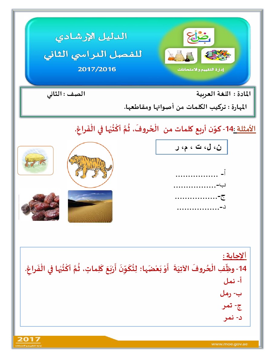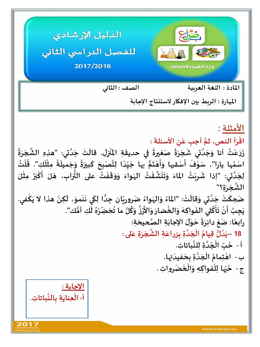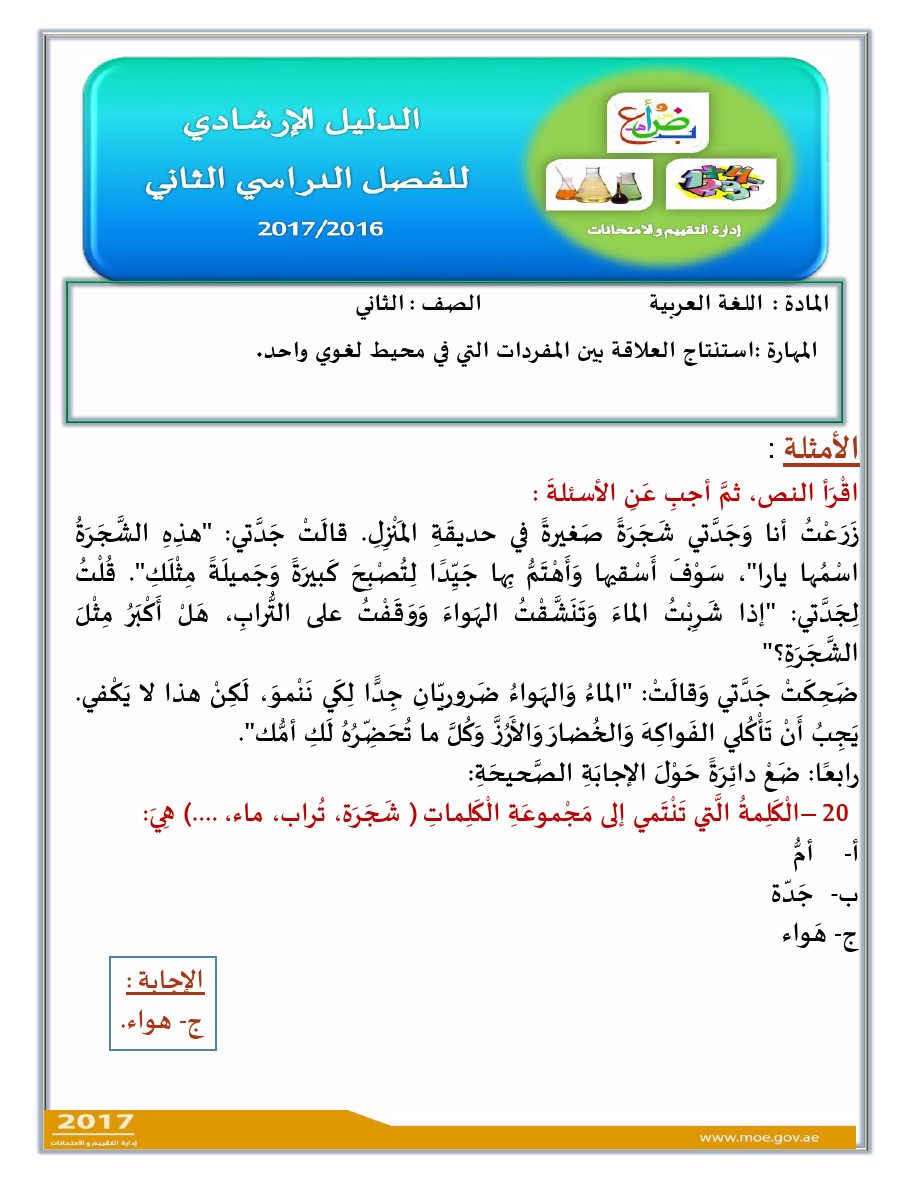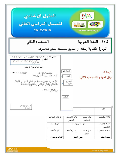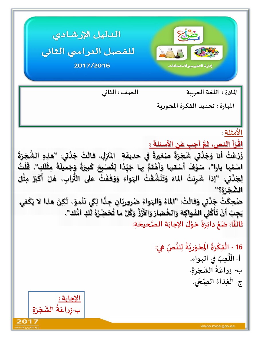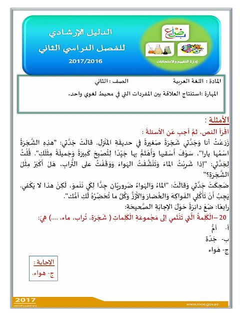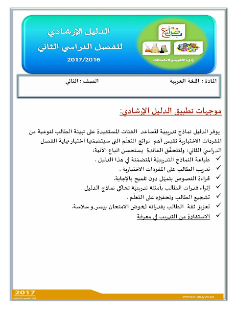 معلومات الملف: الصف الثاني, الفصل الثاني, لغة عربية, الدليل الإرشادي لامتحان نهاية الفصل الثاني 2017 ـ صور | ||