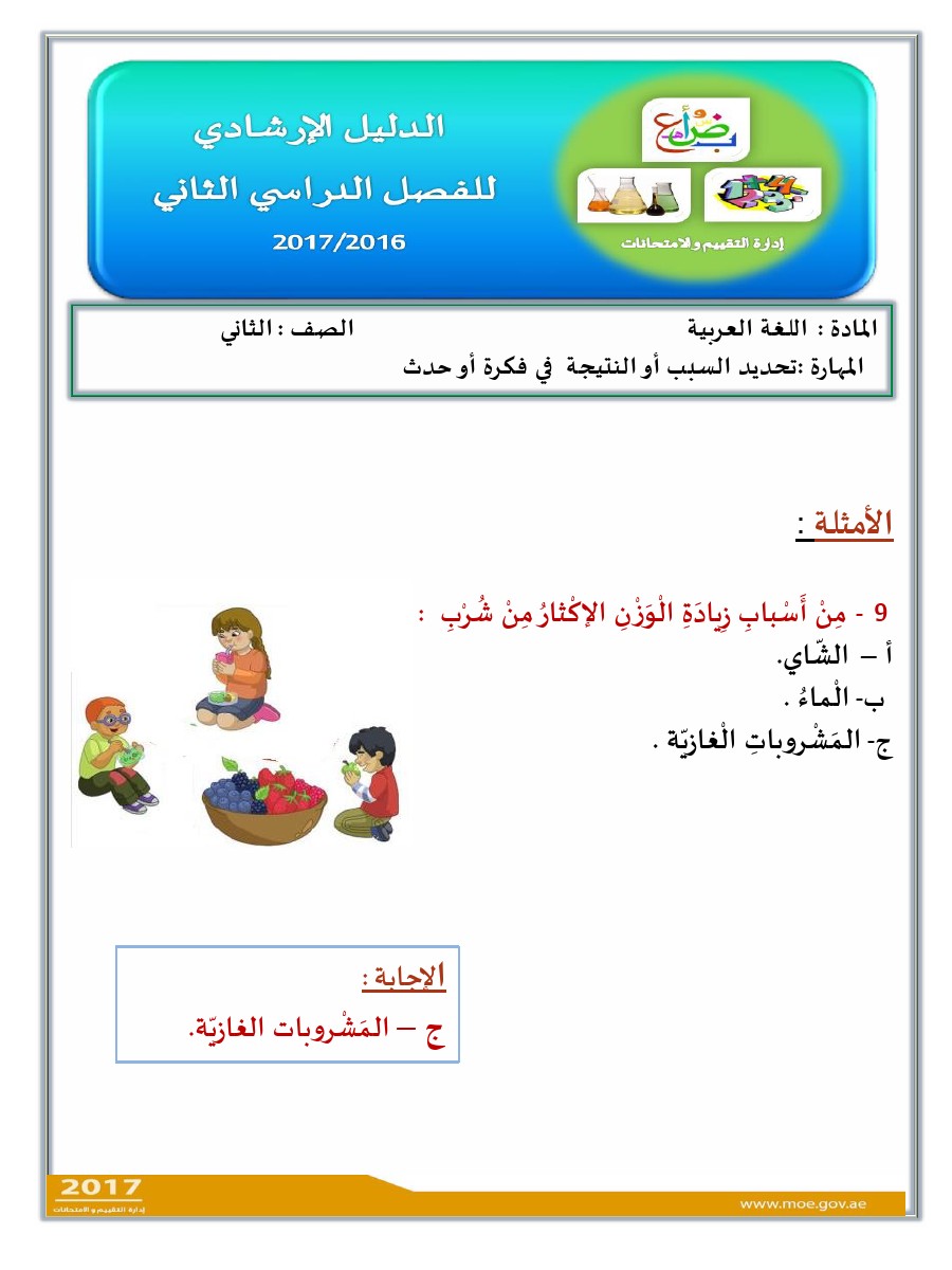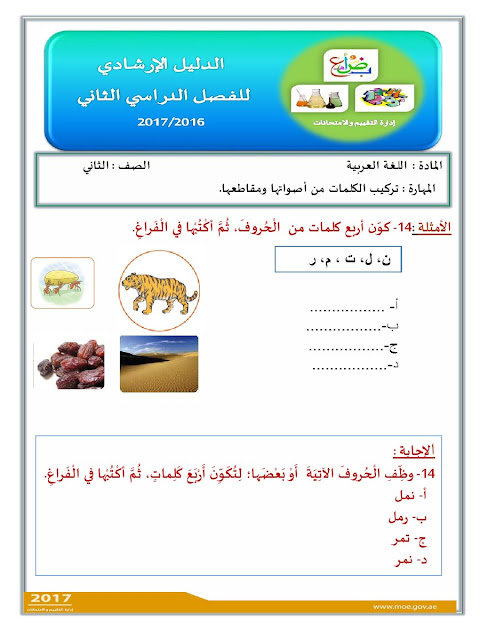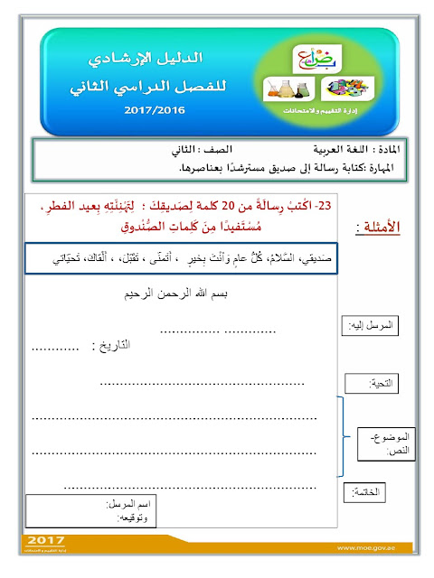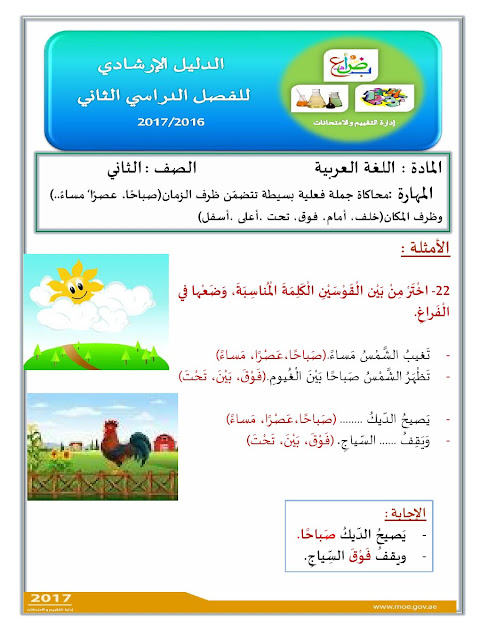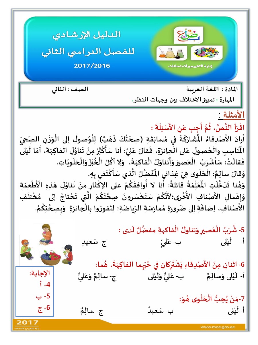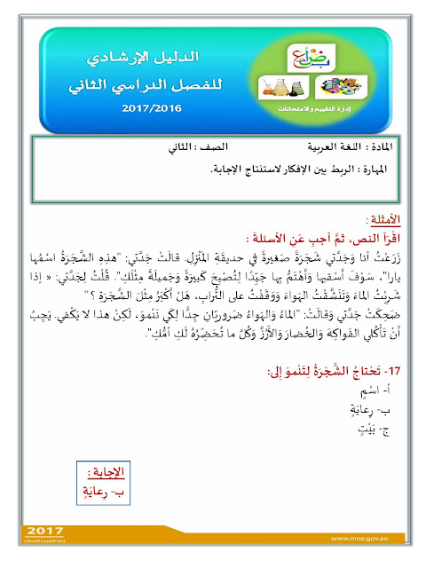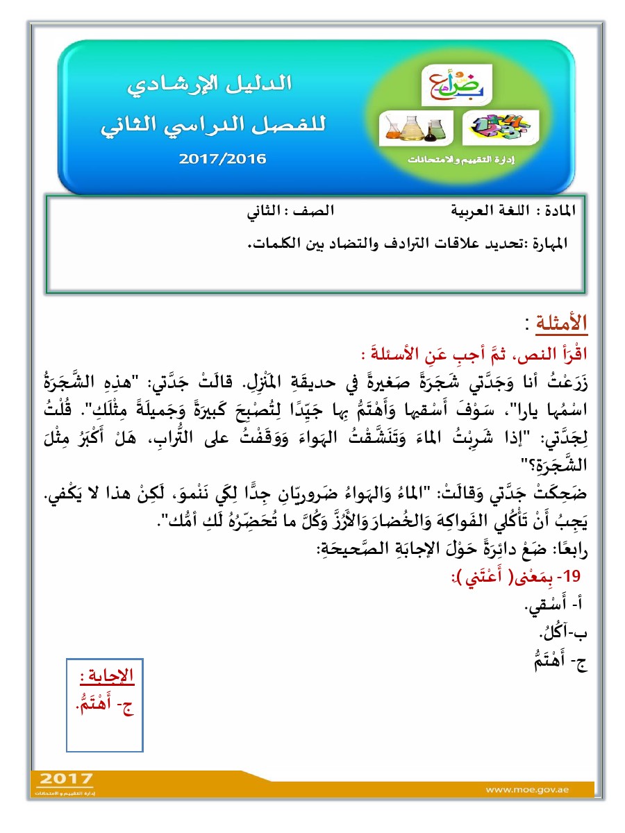 معلومات الملف: الصف الثاني, الفصل الثاني, لغة عربية, الدليل الإرشادي لامتحان نهاية الفصل الثاني 2017 ـ صور | ||