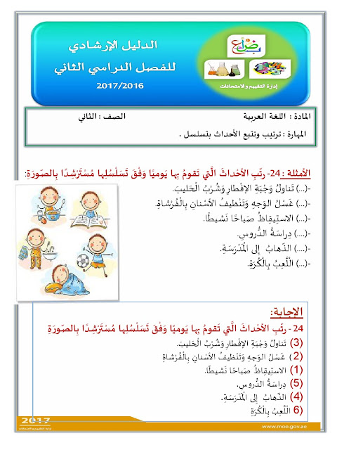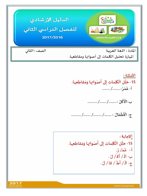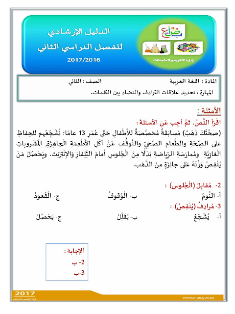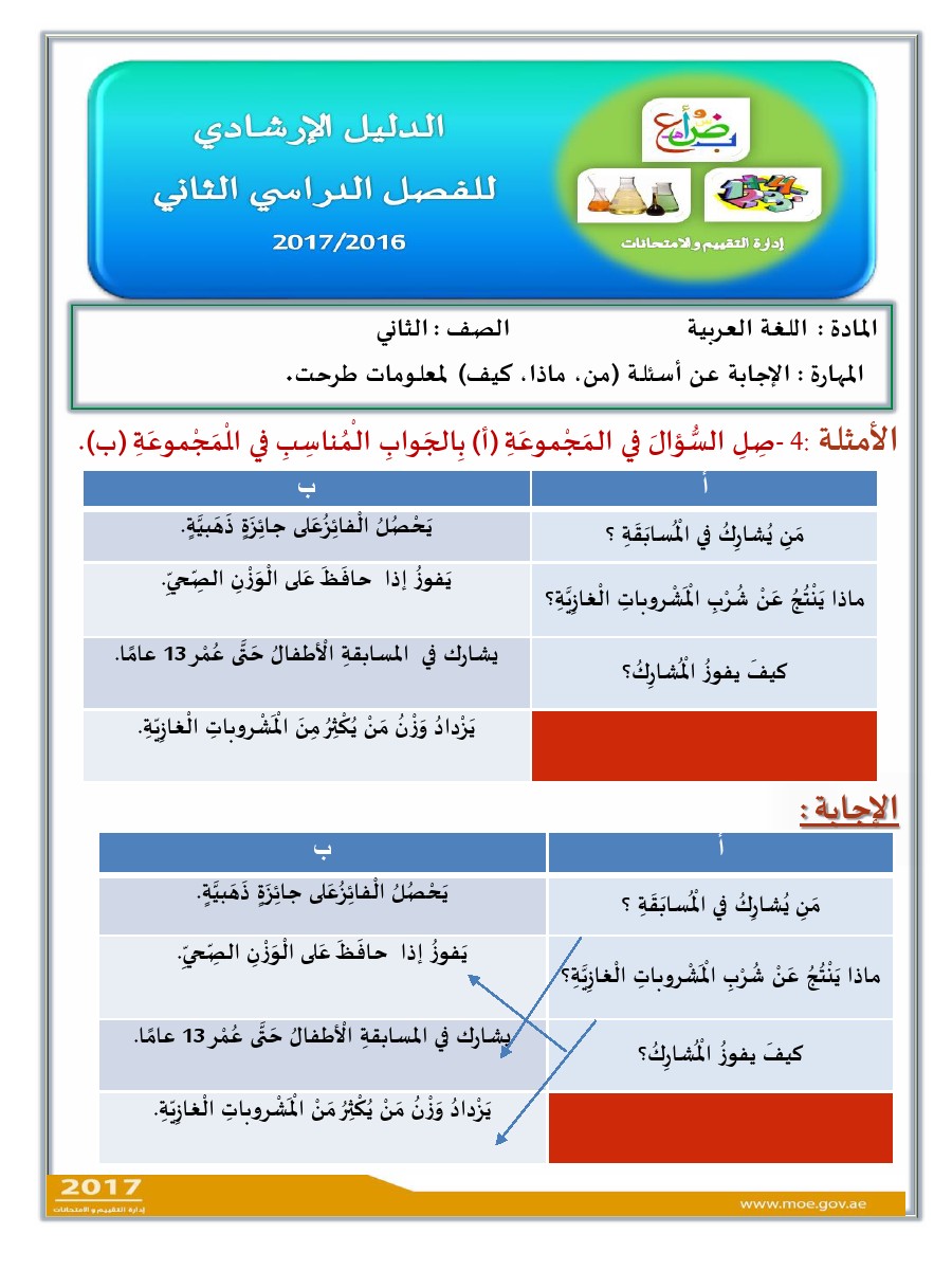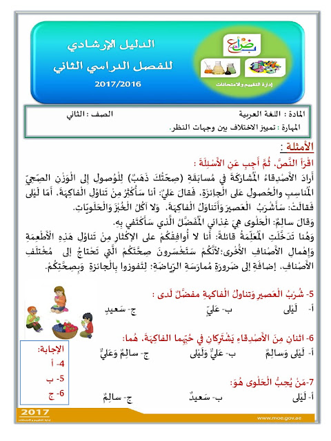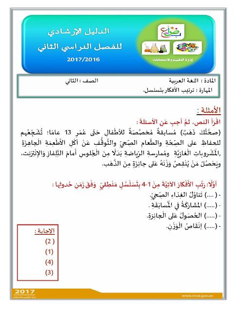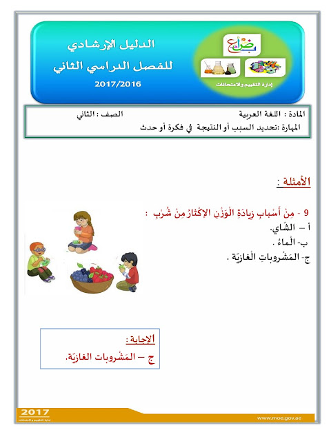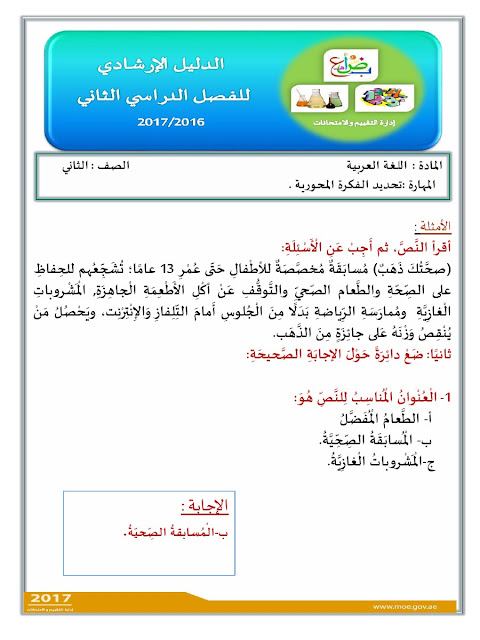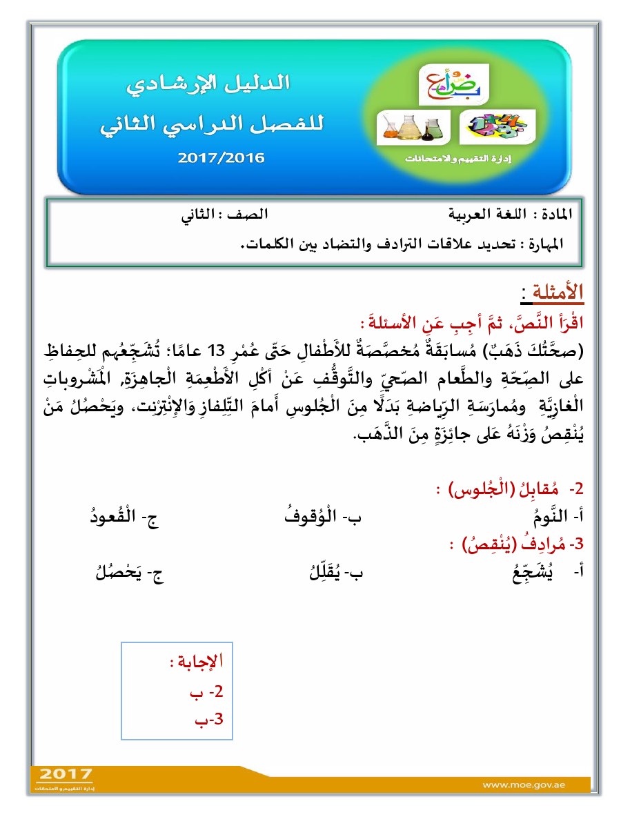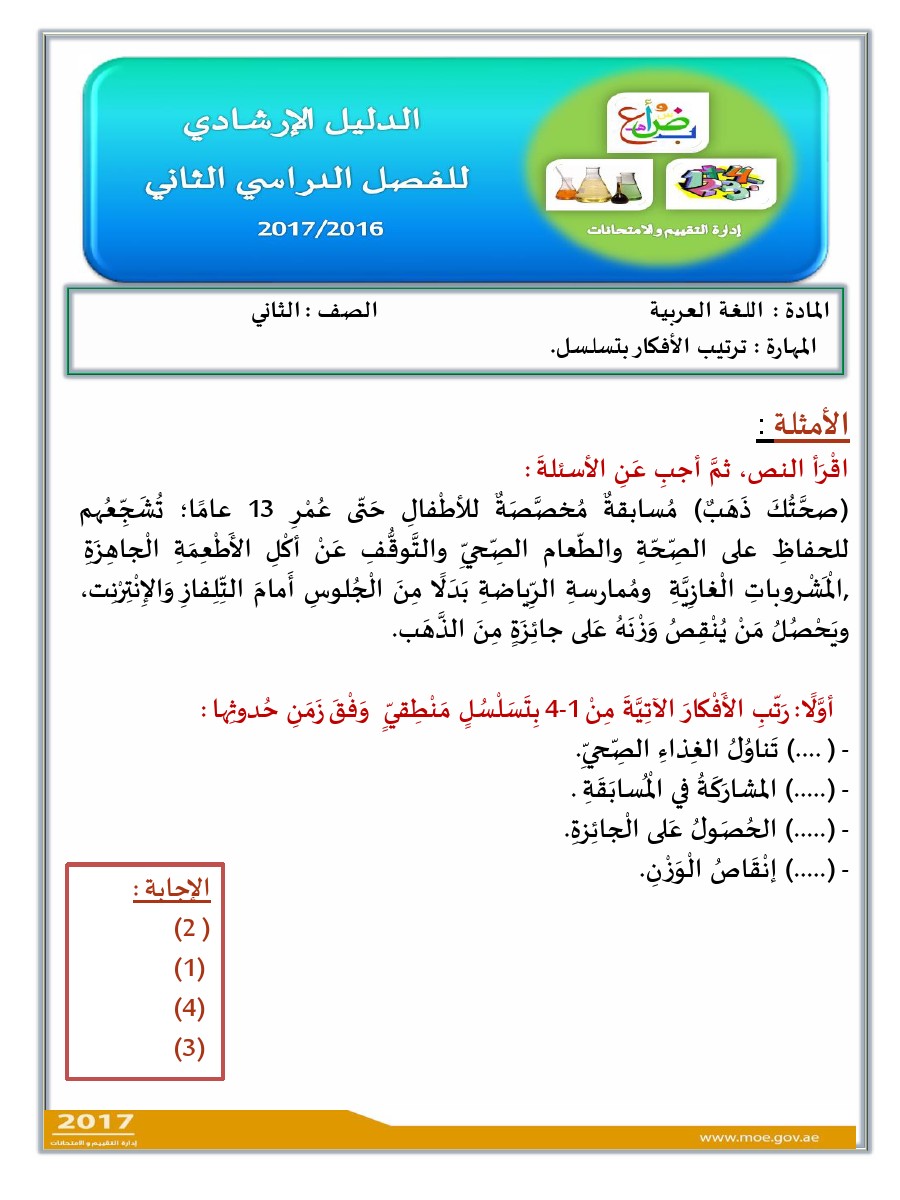 معلومات الملف: الصف الثاني, الفصل الثاني, لغة عربية, الدليل الإرشادي لامتحان نهاية الفصل الثاني 2017 ـ صور | ||