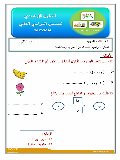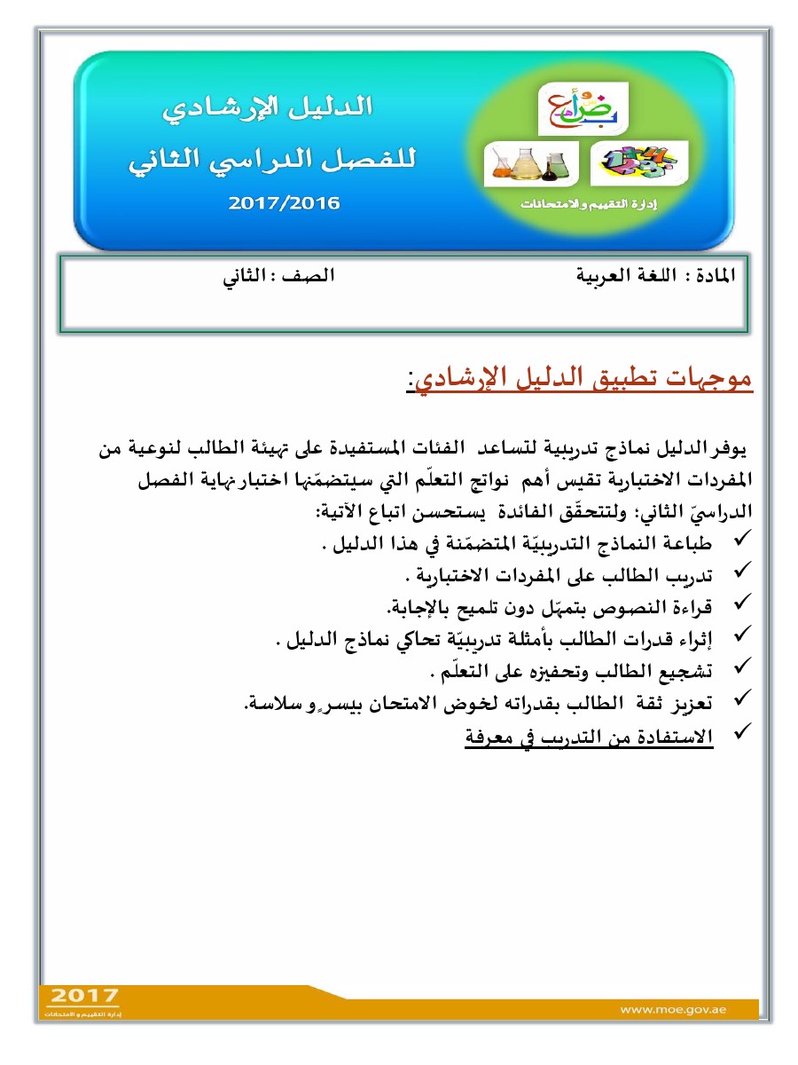 يقدم لكم (موقع المناهج) الدليل الإرشادي في مادة اللغة العربية للصف الثاني وذلك تحضيراً لامتحان نهاية الفصل الثاني من العام الدراسي 2016-2017