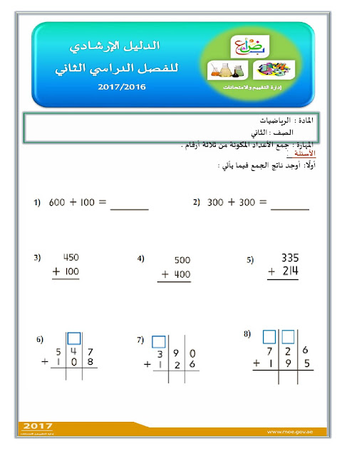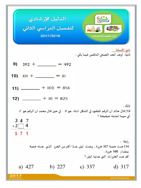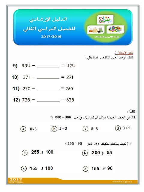 5. الصف الخامس, رياضيات, مذكرة الاختبارات الوطنية من المدرسة الأهلية الخيرية