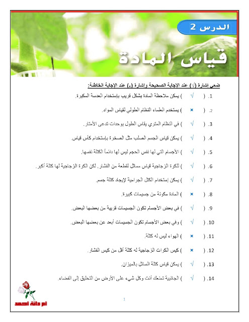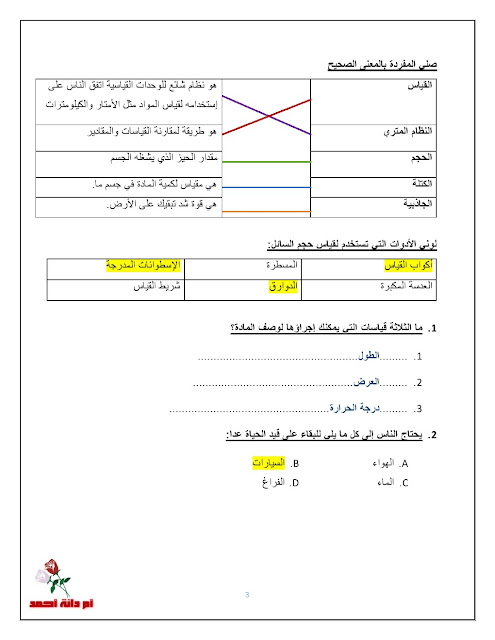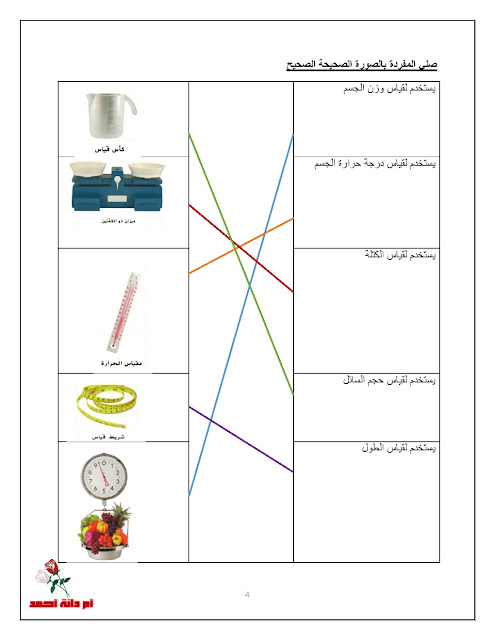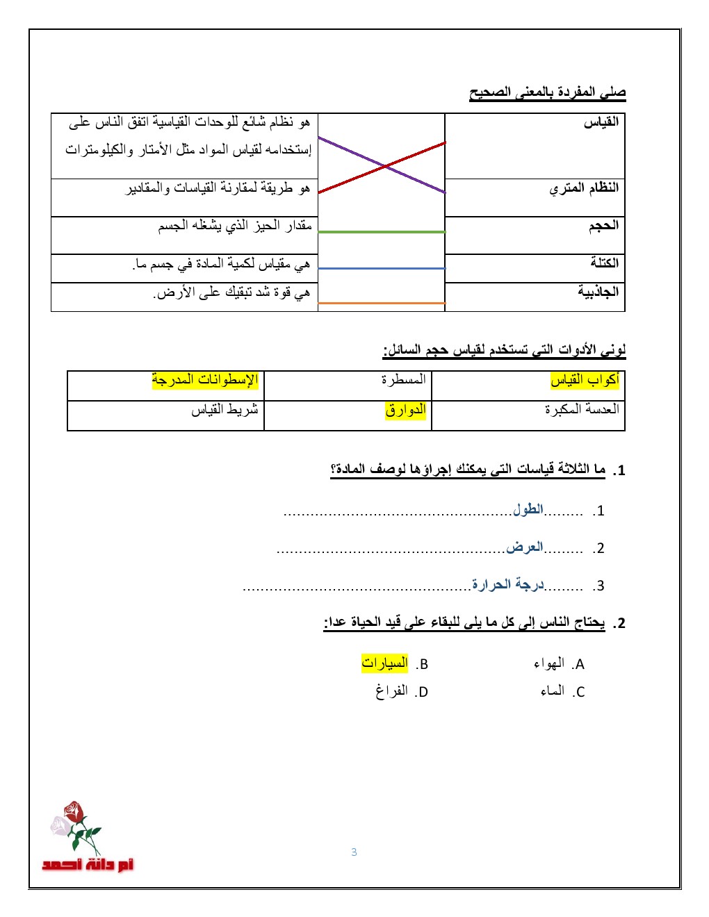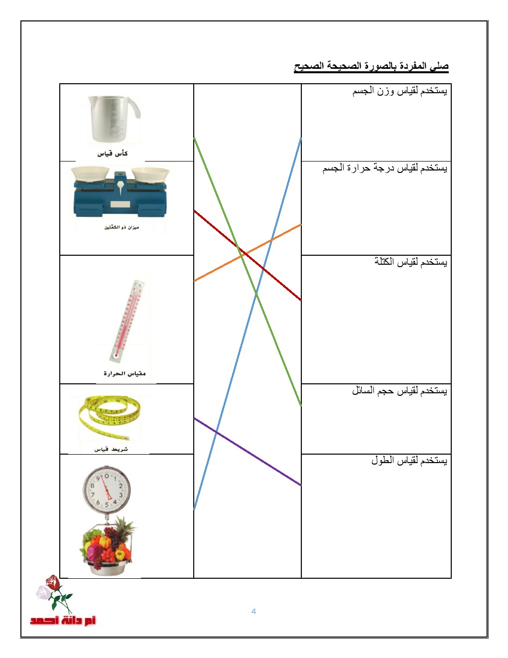 معلومات الملف: الصف الرابع, الفصل الثاني, علوم, اختبار في (قياس المادة) | ||