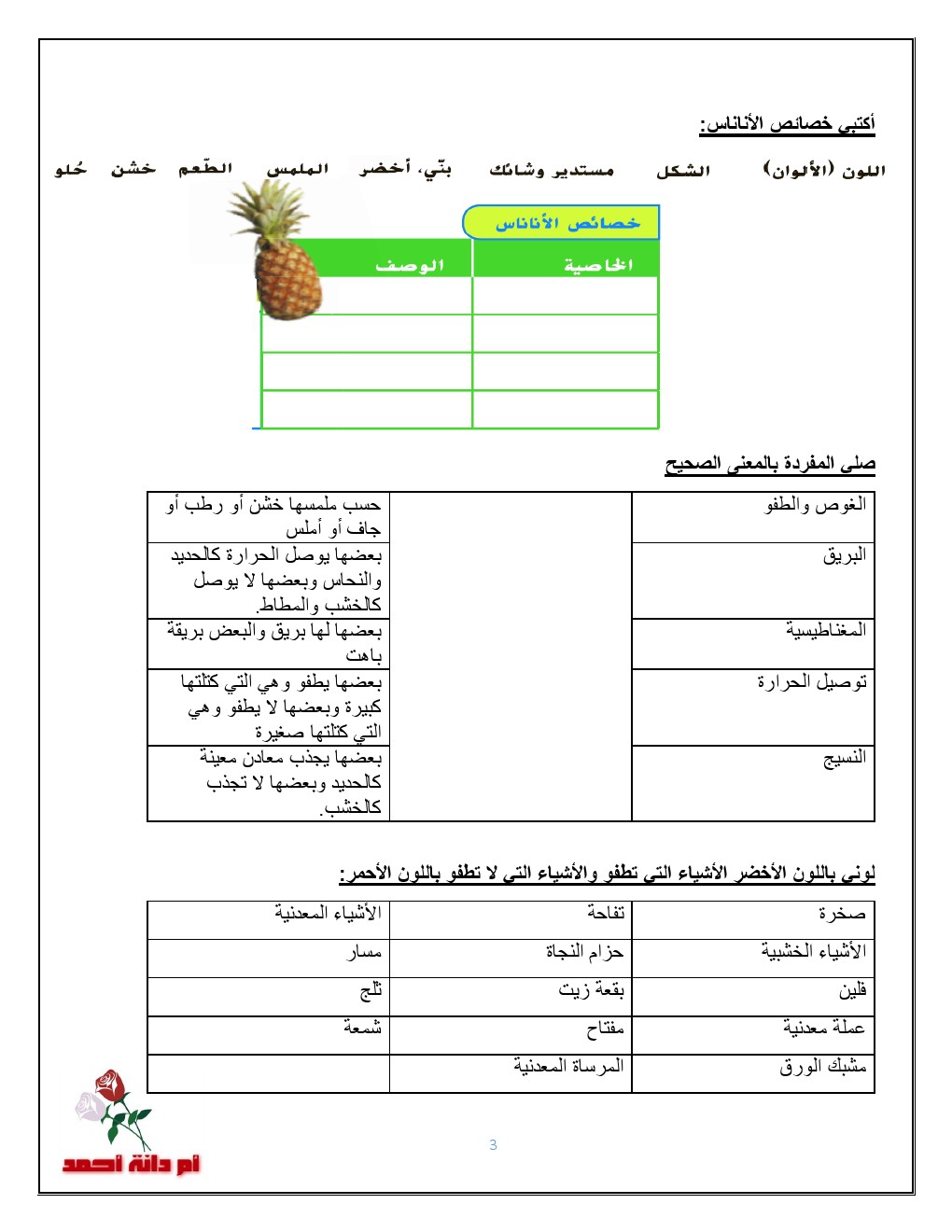 | اختبار في (خصائص المادة) | ||