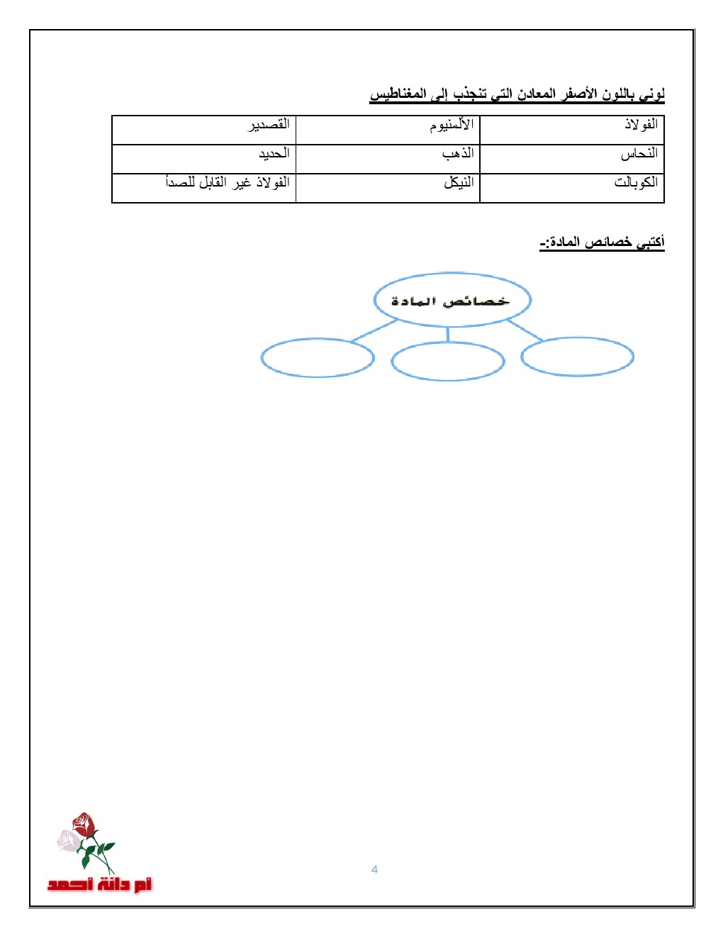 معلومات الملف: الصف الرابع, الفصل الثاني, اختبار في (خصائص المادة) | ||