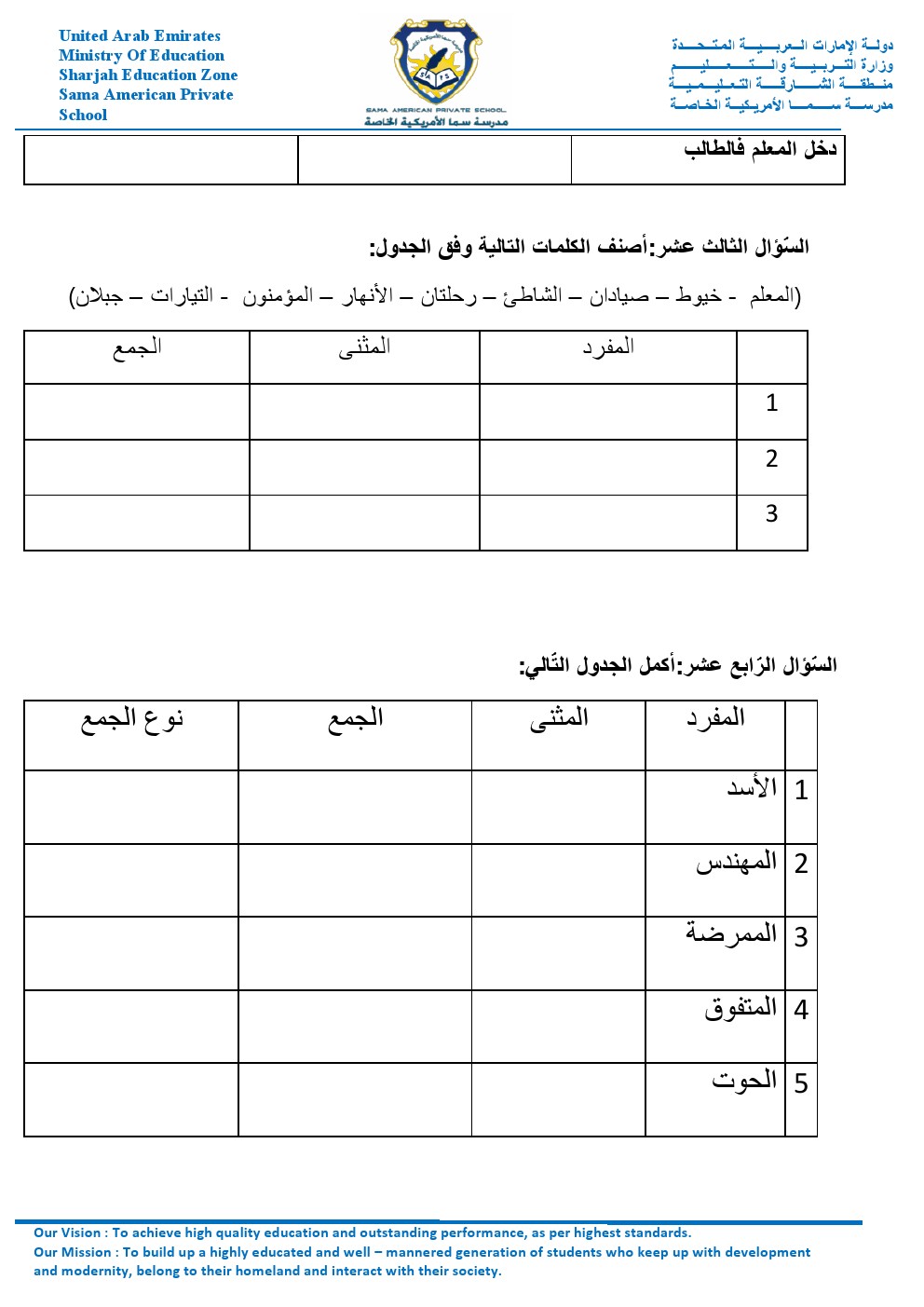 أهلاً بكم جميعاً طلاباً ومدرسين وأهالي طلبة ومهتمين، في قسم دولة الإمارات ، نحن الآن في الفصل الأول من العام الدراسي 2025/2026 وتاريخ اليوم 2025/10/11 م | |