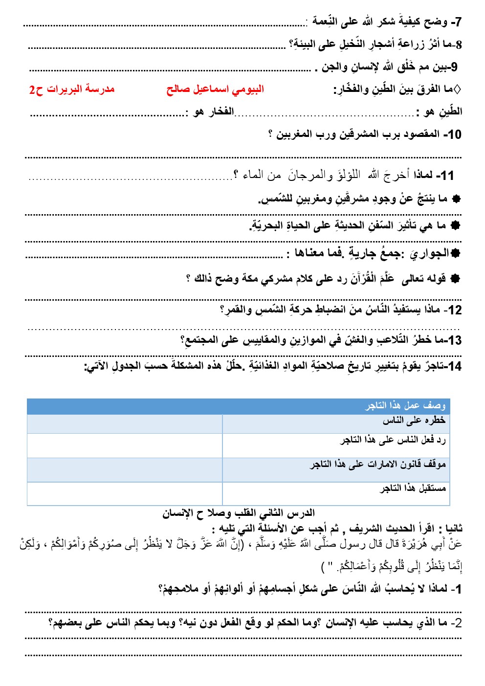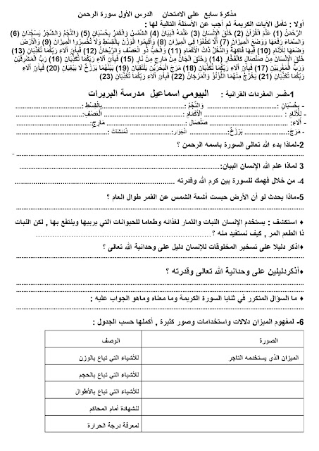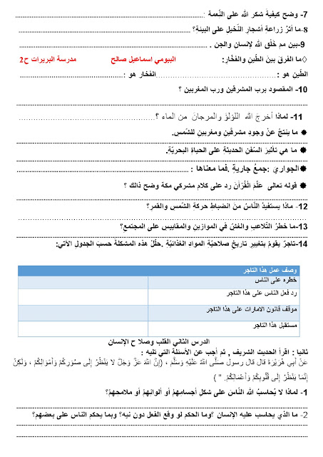 4. الصف السادس, رياضيات, مذكرة الاختبارات الوطنية من المدرسة الأهلية الخيرية