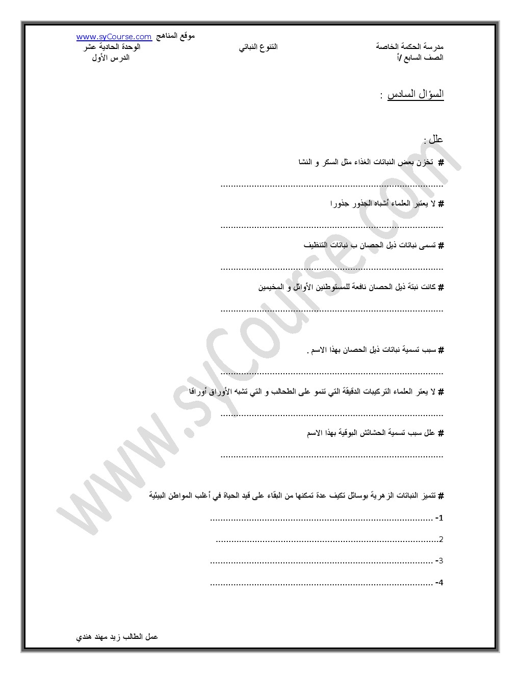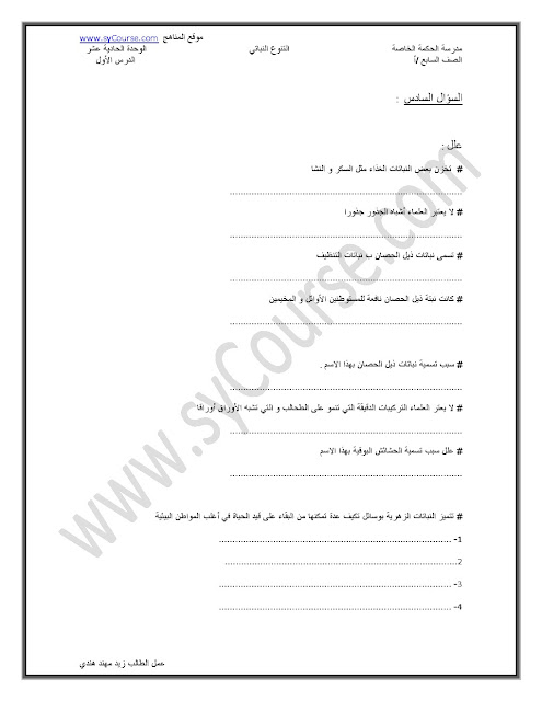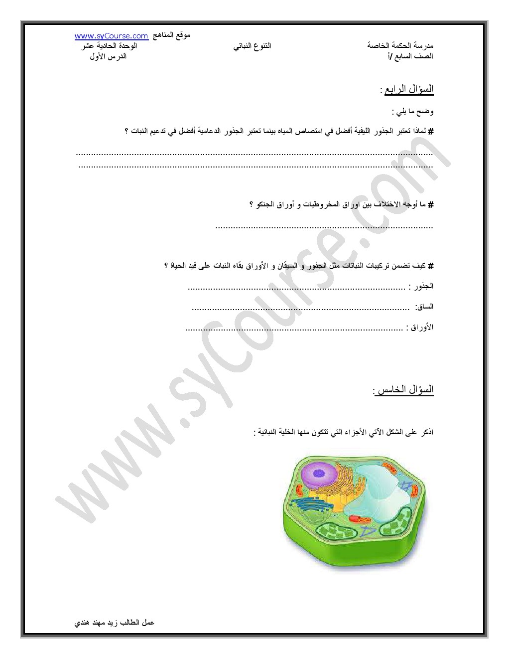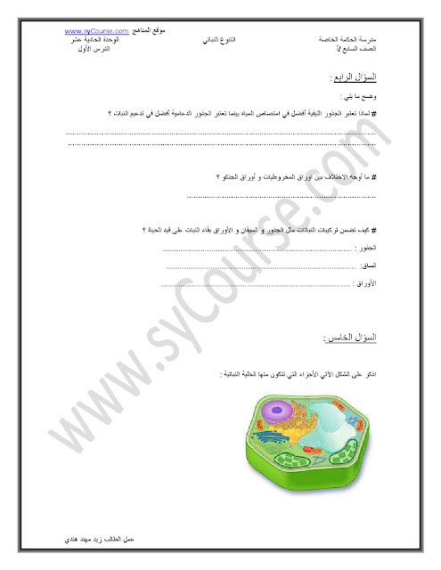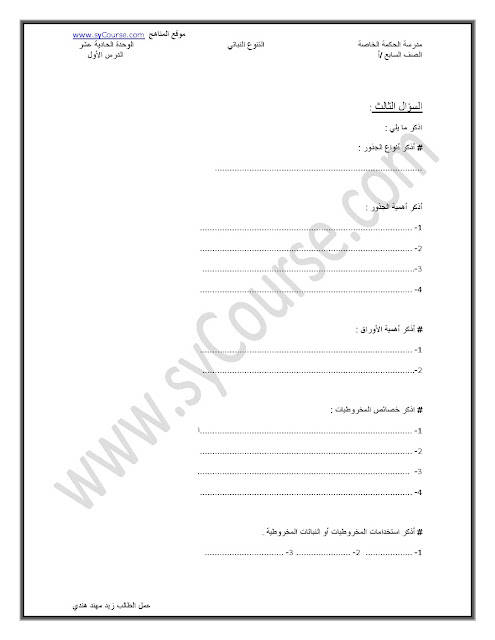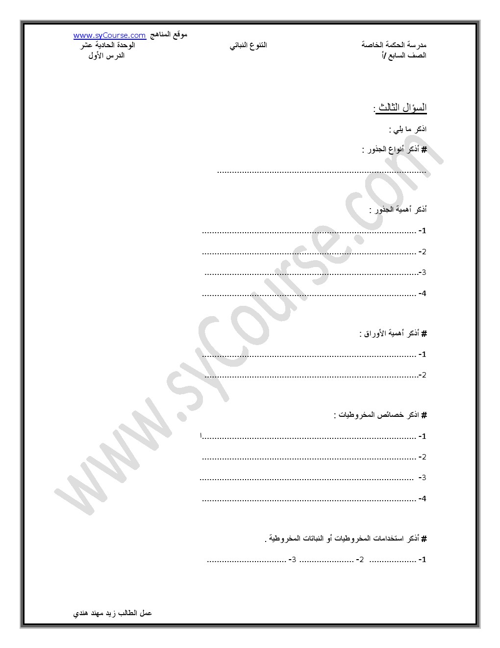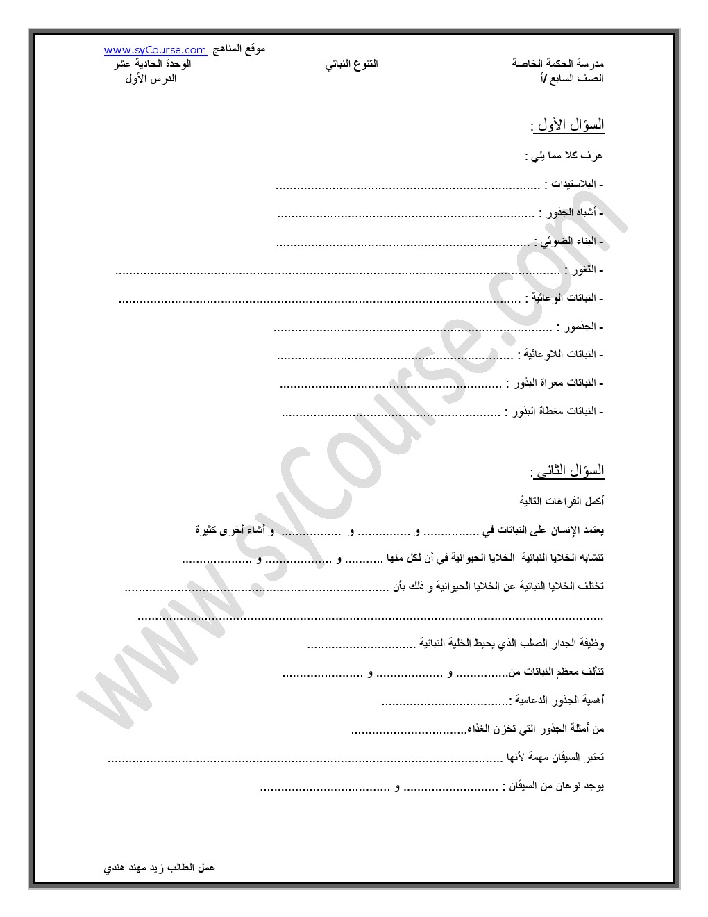 معلومات الملف: الصف السابع, الفصل الثاني, علوم, تلخيص وأوراق عمل درس (التنوع النباتي)+الحلول | ||