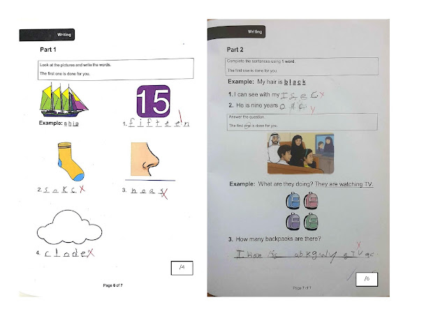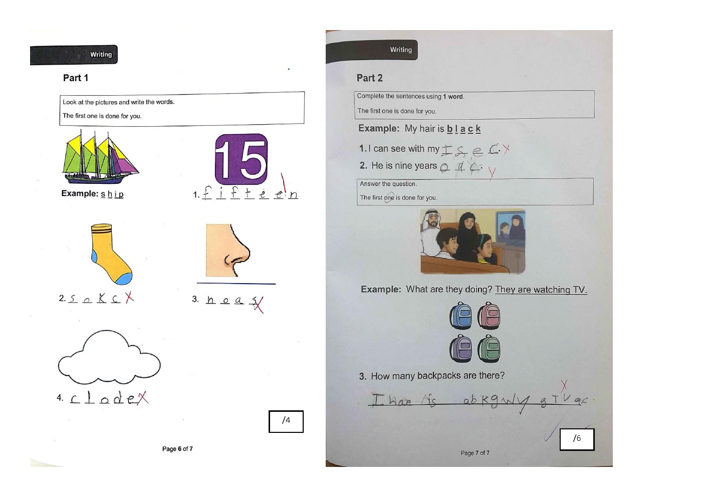 معلومات الملف: الصف الثالث, الفصل الثاني, لغة انكليزية,نموذجامتحاني لامتحان الكتابة لنهاية الفصل مع أجوبة الطلبة وتصحيحها | ||