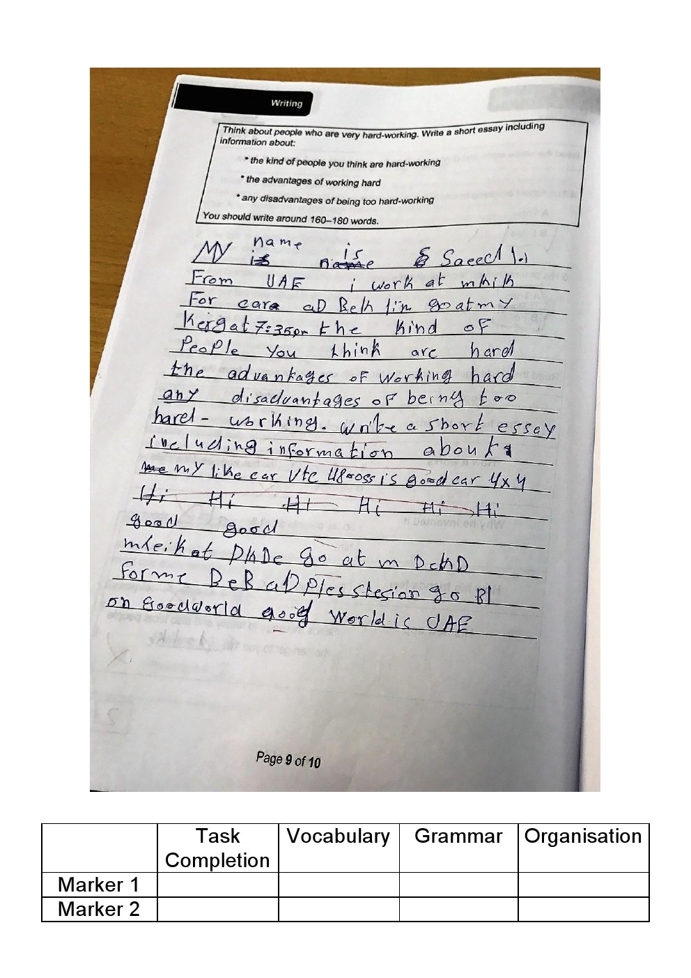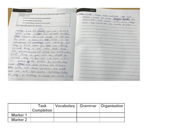 معلومات الملف: الصف التاسع, الفصل الثاني, لغة انكليزية,نموذجامتحاني لامتحان الكتابة لنهاية الفصل مع أجوبة الطلبة | ||