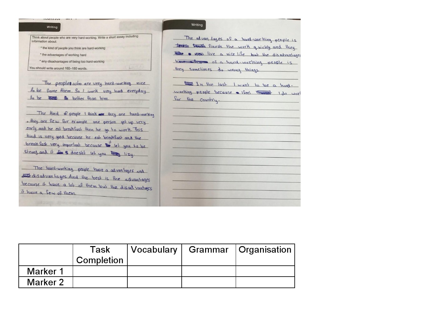 نموذج امتحاني لامتحان الكتابة لنهاية الفصل مع أجوبة الطلبة | ||