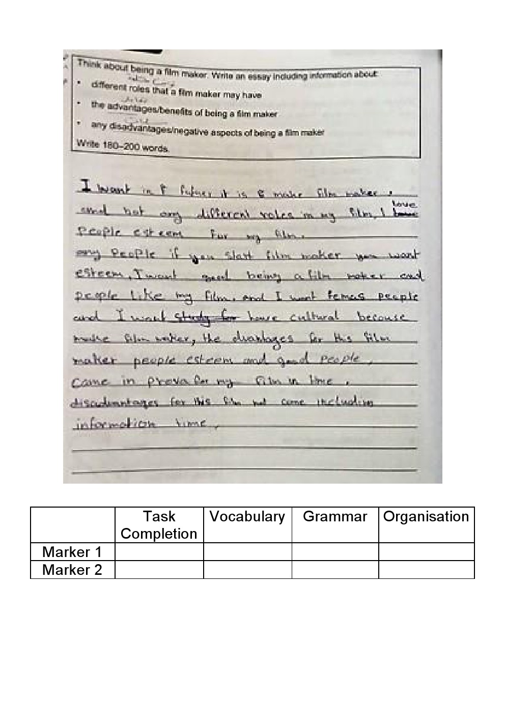 معلومات الملف: الصف الحادي عشر المتقدم, الفصل الثاني, لغة انكليزية,نموذجامتحاني لامتحان الكتابة لنهاية الفصل مع أجوبة الطلبة وتصحيحها | ||