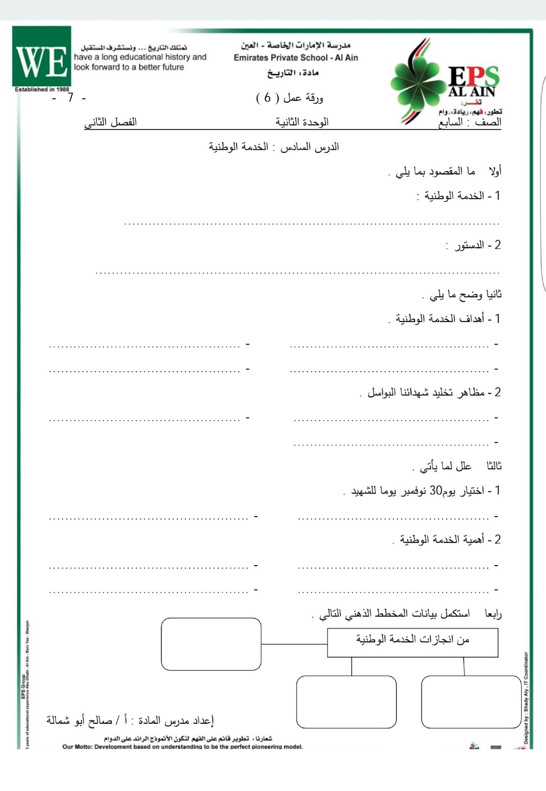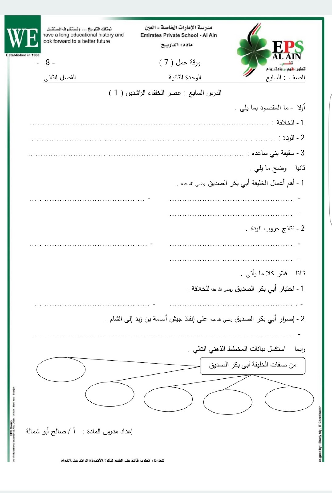 الصف السابع, الفصل الثاني, اجتماعيات, ملف شامل لامتحان id=304