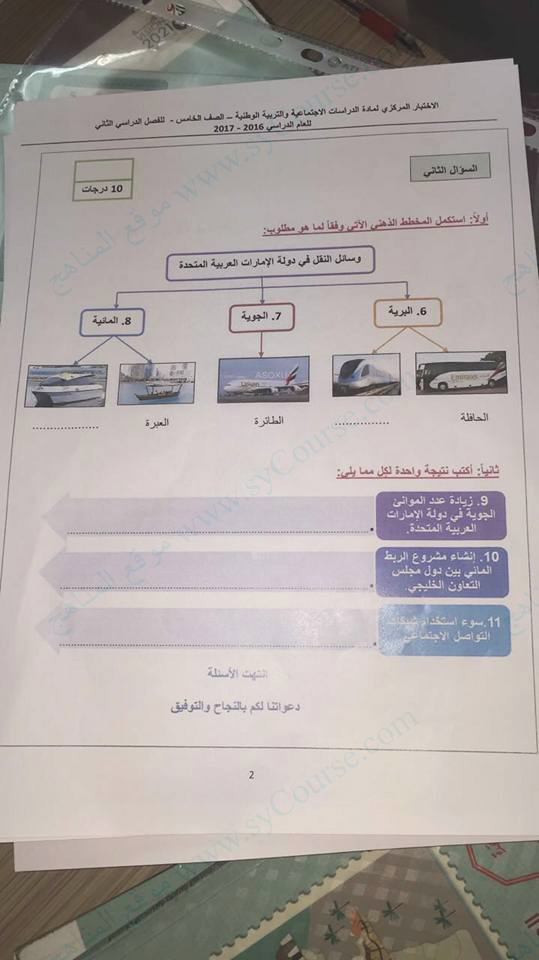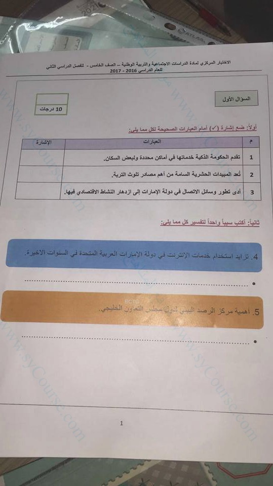 معلومات الملف: الصف الخامس, الفصل الثاني, اجتماعيات, الاختبار المركزي القصير للعام الدراسي 2016-2017 | ||