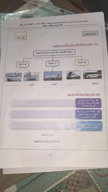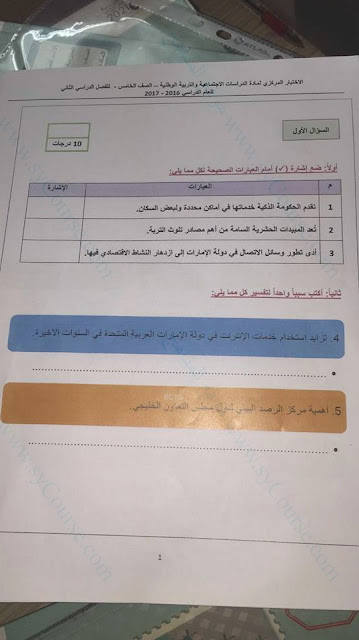 إليكم الاختبار المركزي القصير في مادة الدراسات الاجتماعية للصف الخامس- الفصل الثاني من العام الدراسي 2016-2017