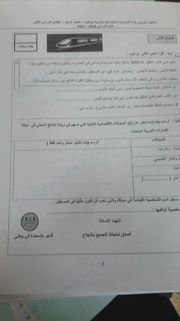 إليكم أسئلة الاختبار المركزي الوزاري في مادة الدراسات الاجتماعية للصف الرابع- الفصل الثاني من العام الدراسي 2016-2017