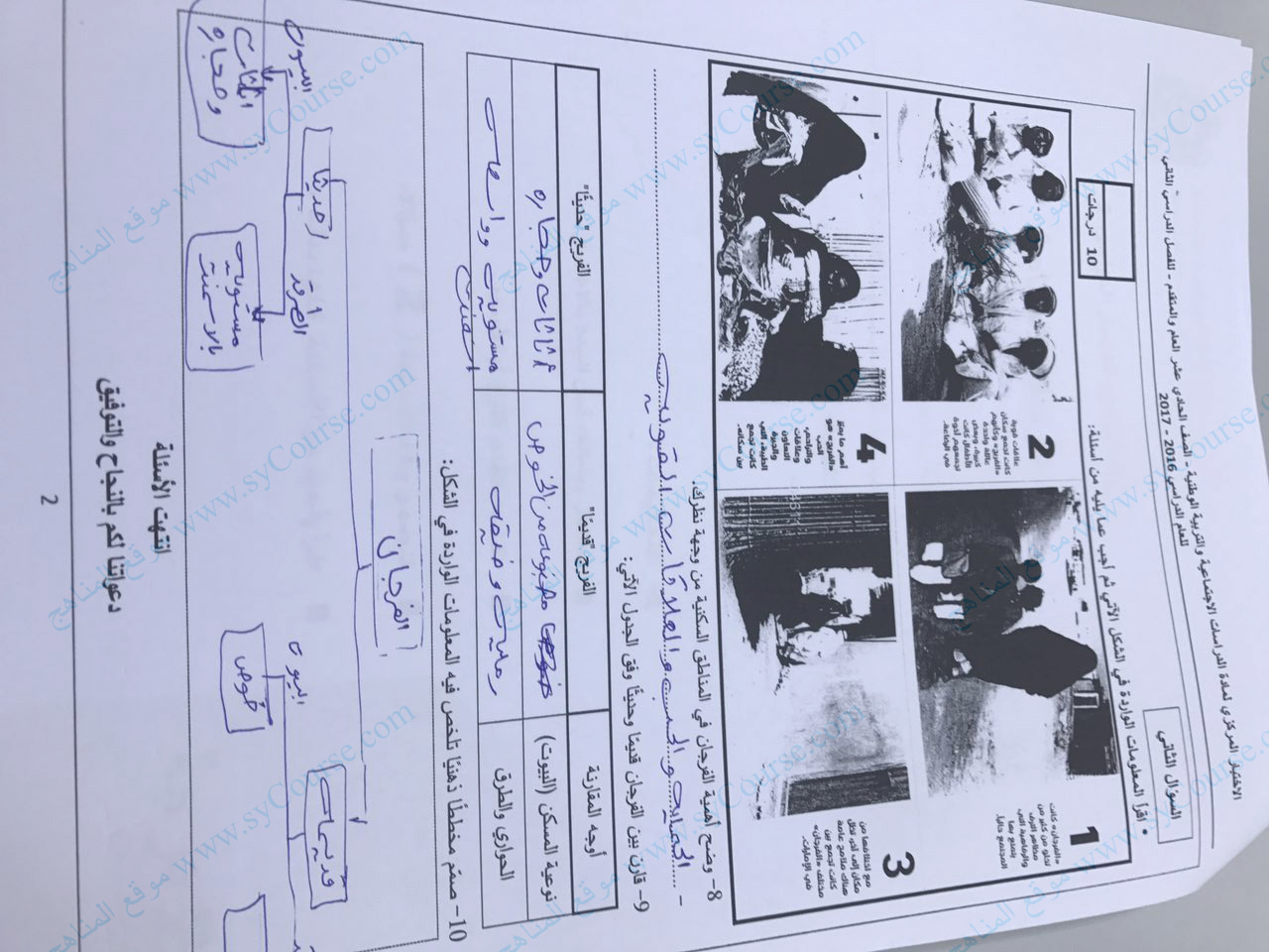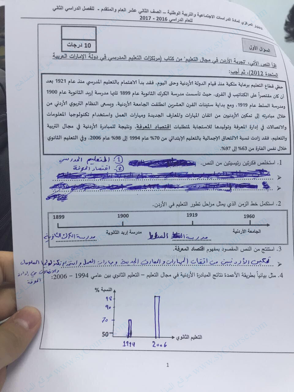الصف الثاني عشر, الفصل الثاني, اجتماعيات, أسئلة الاختبار الوزاري المركزي للعام الدراسي 2016-2017