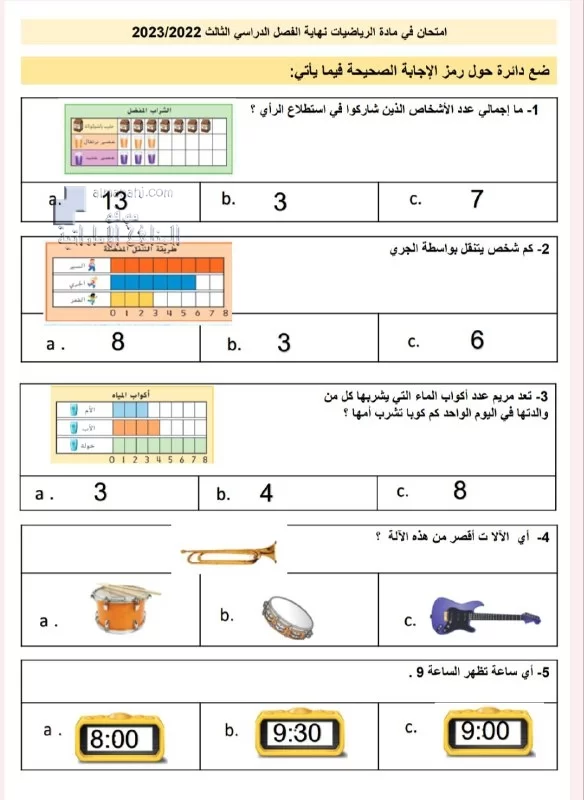 أنت هنا: موقع المناهج ⇦ المناهج الإماراتية ⇦ الصف الأول ⇦ رياضيات ⇦ الفصل الثالث ⇦ الامتحان النهائي |