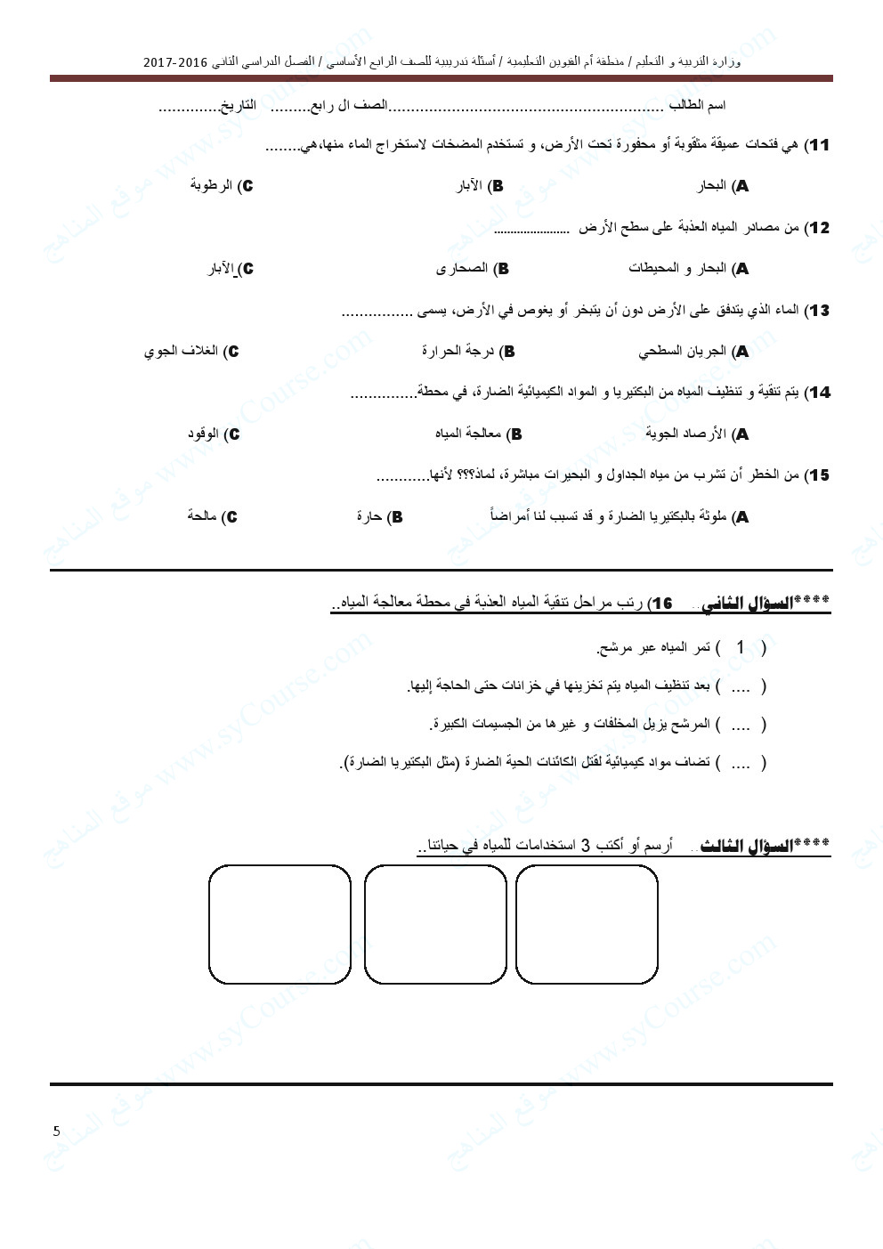 الصف الرابع, الفصل الثاني, علوم, أسئلة تدريبية كمراجعة لامتحان نهاية الفصل للتحميل اتبع الرابط التالي: | ||