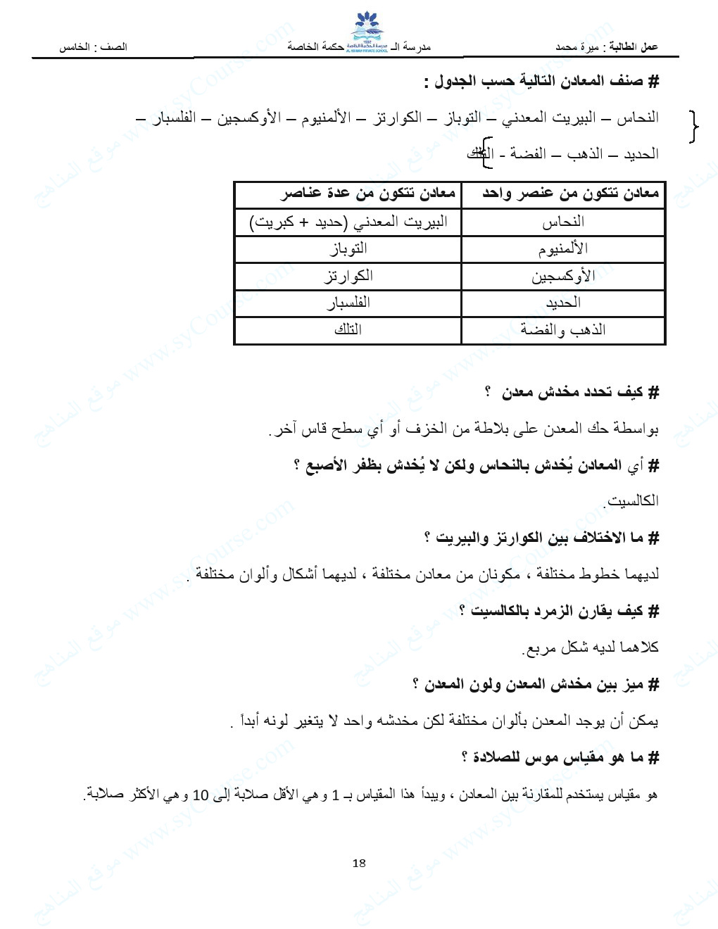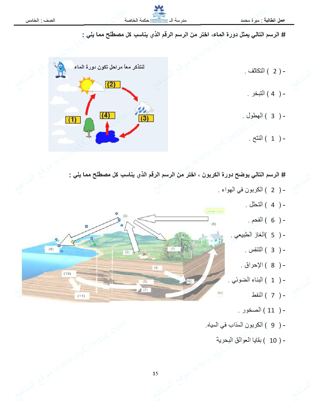 الصف الخامس, الفصل الثاني, علوم, تلخيص شامل لمقررات امتحان نهاية الفصل لتحميل الملف اتبع الرابط التالي: http://sycourse.com/up/do.php?id=337 وإليكم الملخص على شكل صور: