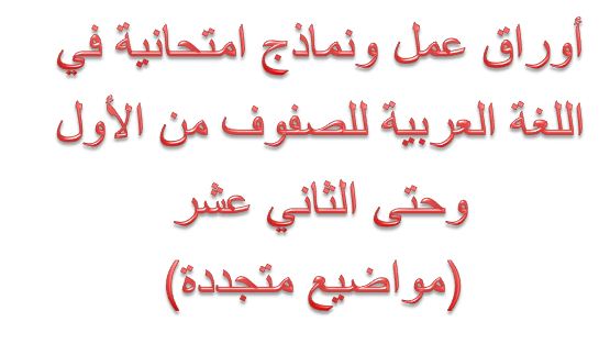 معلومات الملف: أوراق عمل ونماذج امتحانية في اللغة العربية للصفوف من الأول وحتى الثاني عشر (مواضيع متجددة) | ||