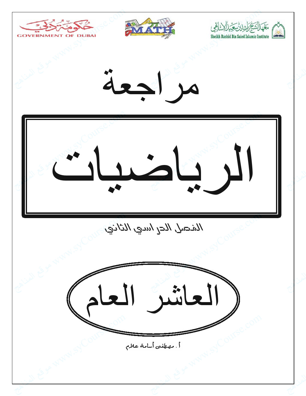 تنويه: الصف العاشر العام, الفصل الثاني, رياضيات, مراجعة شاملة قبل امتحان نهاية الفصل لتحميل الملف اتبع الرابط التالي من فضلك: http://sycourse.com/up/do.php?id=347