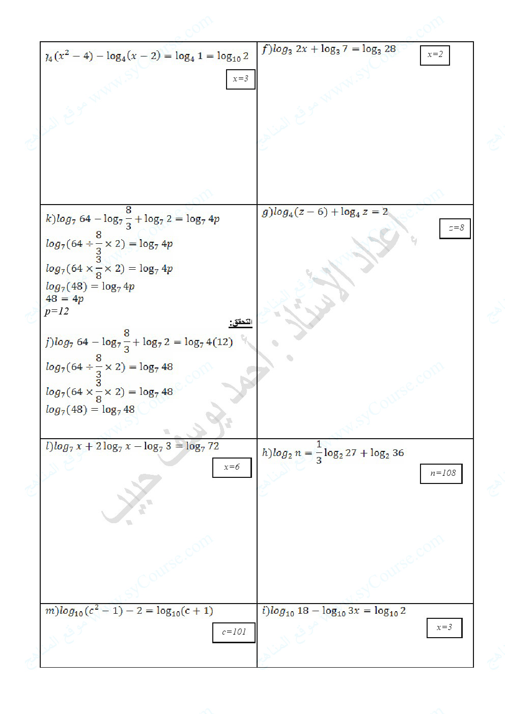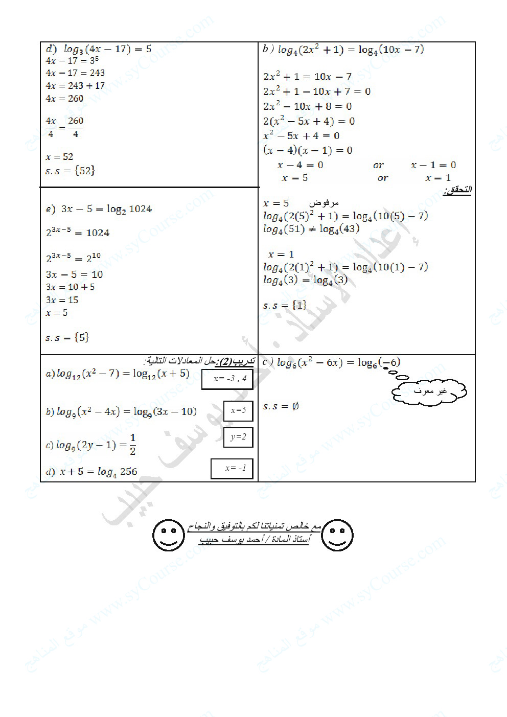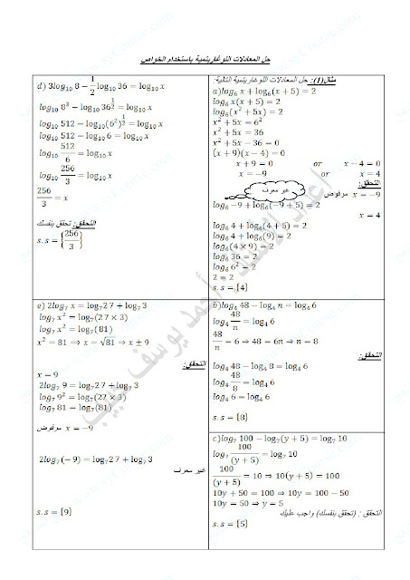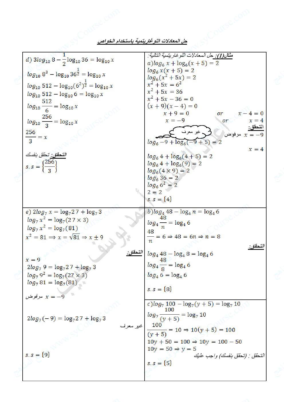 الصف العاشر, الفصل الثاني, رياضيات, حل المعادلات اللوغارتمية للتحميل اتبع الرابط التالي: http://sycourse.com/up/do.php?id=348