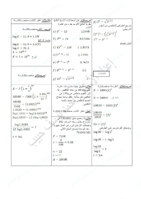 | ورقتي عمل حول اللوغارتيمات الاعتيادية | ||
