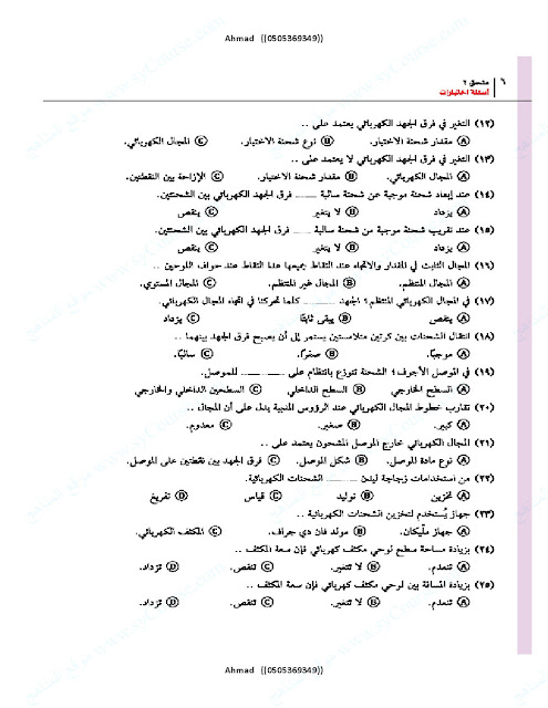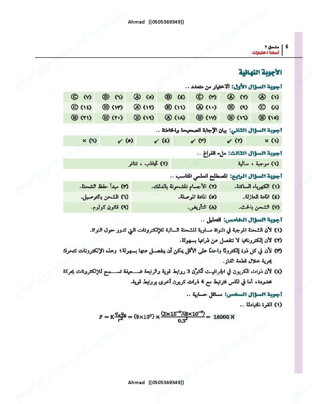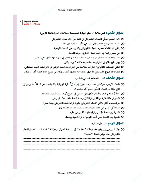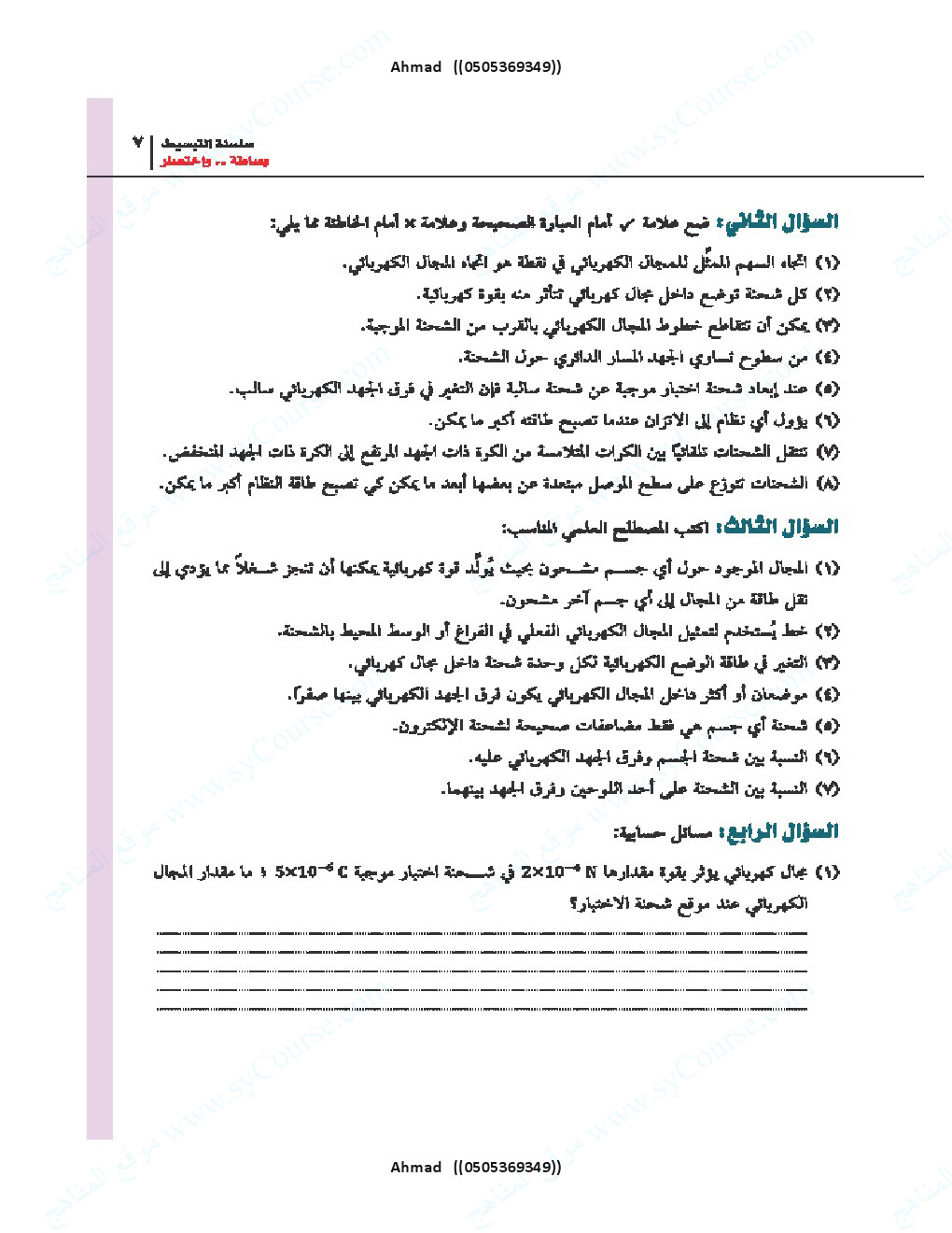 الصف الثاني عشر, الفصل الثاني, فيزياء, نماذج اختبار لامتحان نهاية الفصل للتحميل اتبع الرابط التالي: http://sycourse.com/up/do.php?id=358