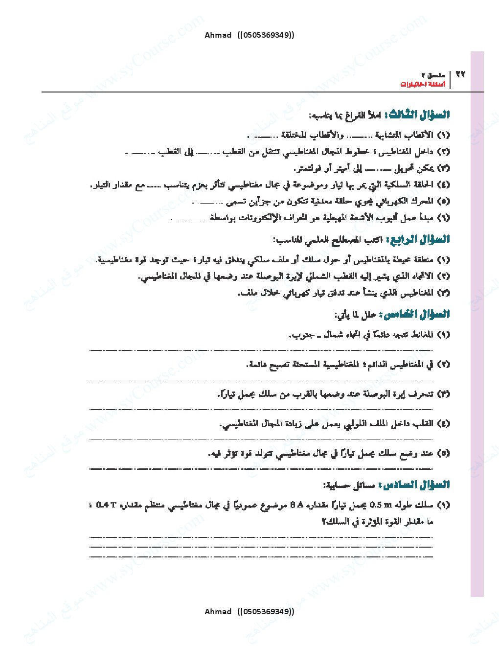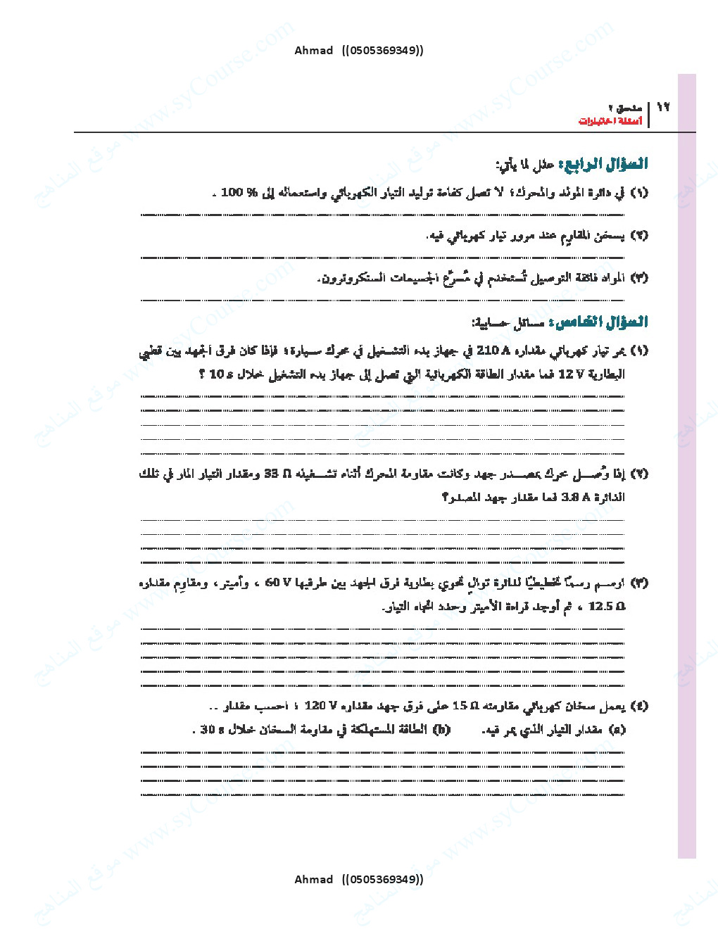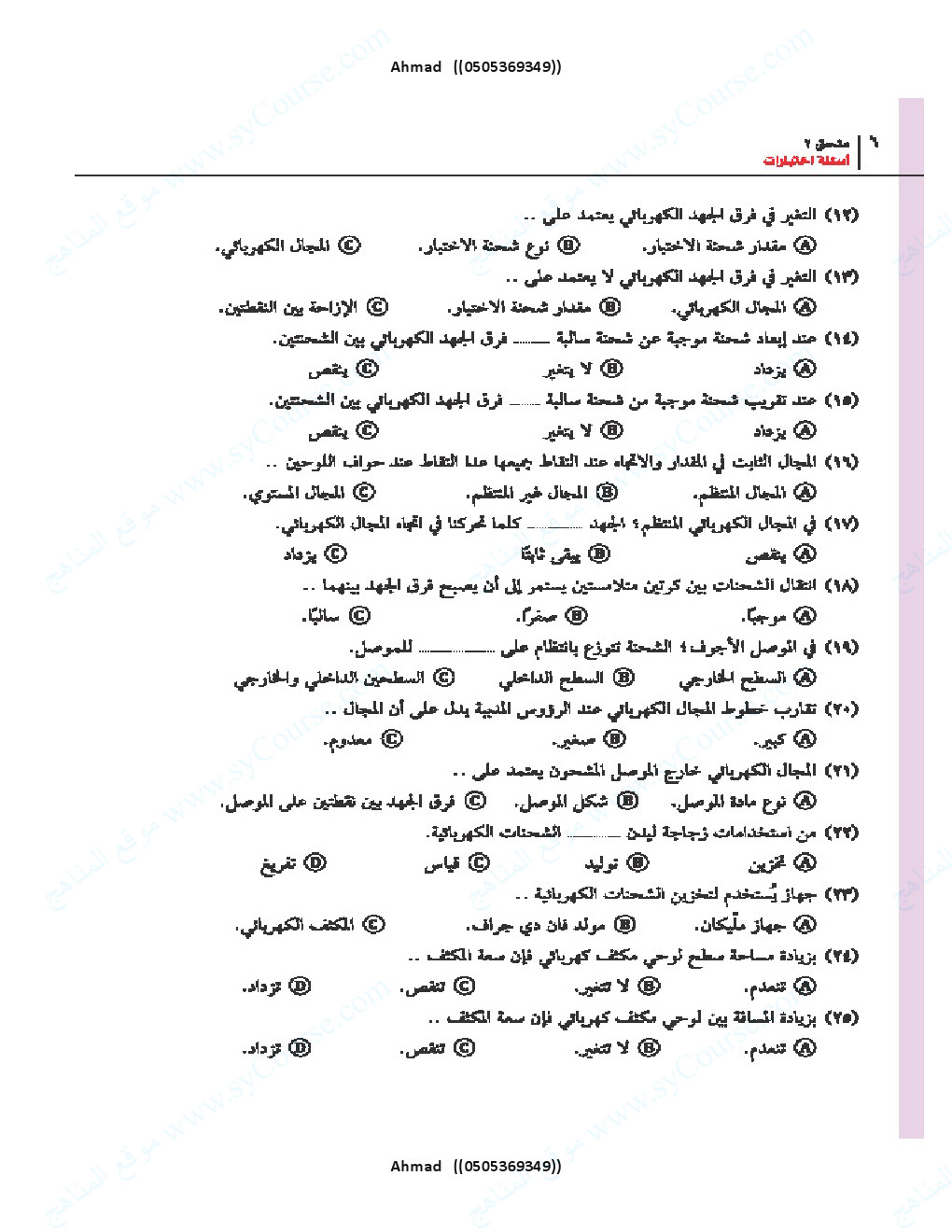 الصف الثاني عشر, الفصل الثاني, فيزياء, نماذج اختبار لامتحان نهاية الفصل للتحميل اتبع الرابط التالي: http://sycourse.com/up/do.php?id=358