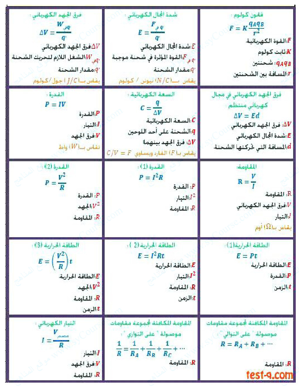 معلومات الملف: الصف الثاني عشر, الفصل الثاني, فيزياء, أهم 15 قانون لامتحان نهاية الفصل الثاني | ||