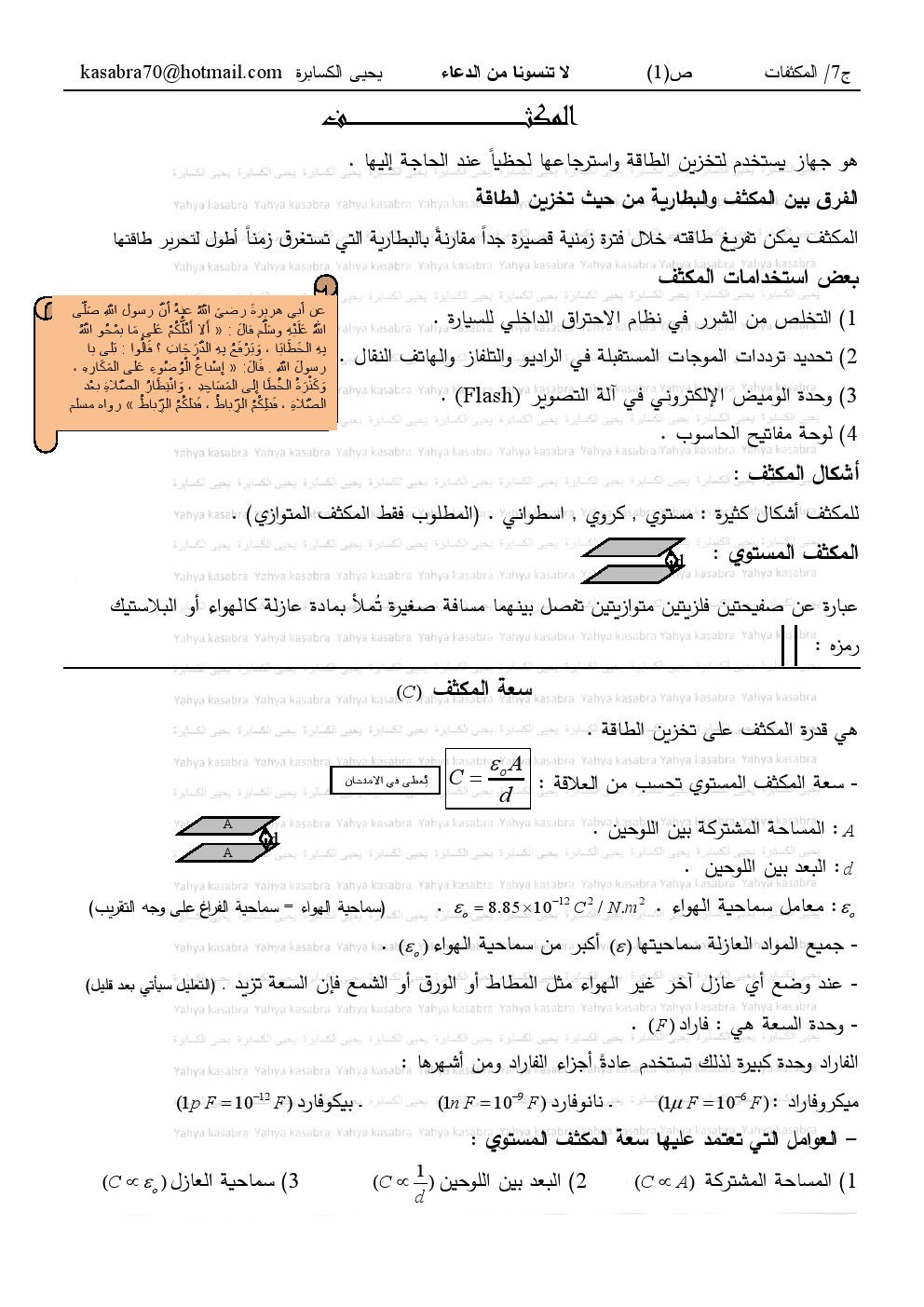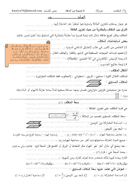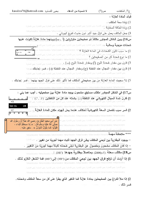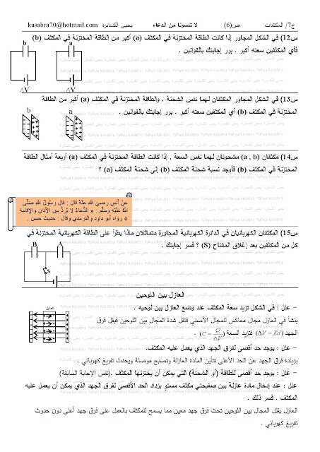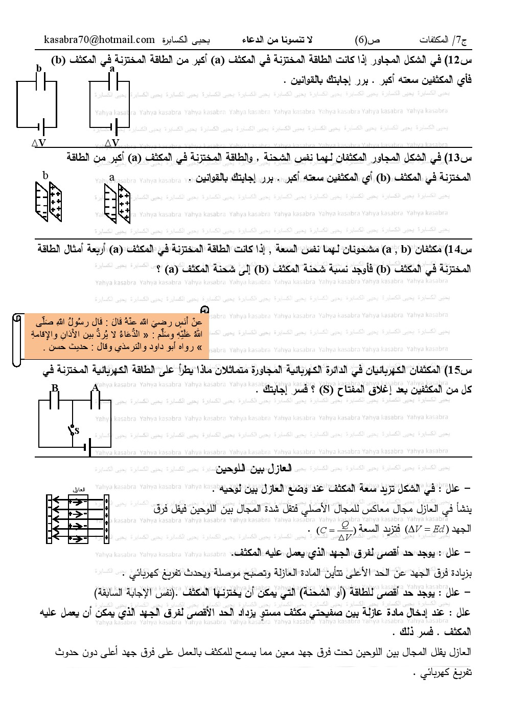 معلومات الملف: الصف الثاني عشر, الفصل الثاني, فيزياء, ملزمة حول المكثفات +الحل  | ||