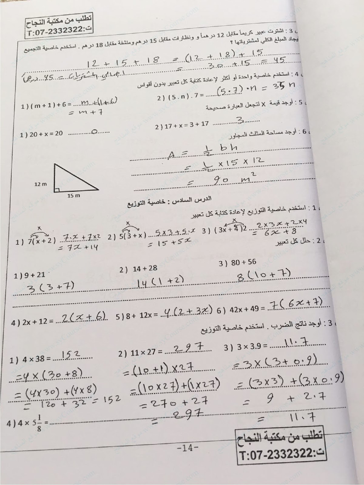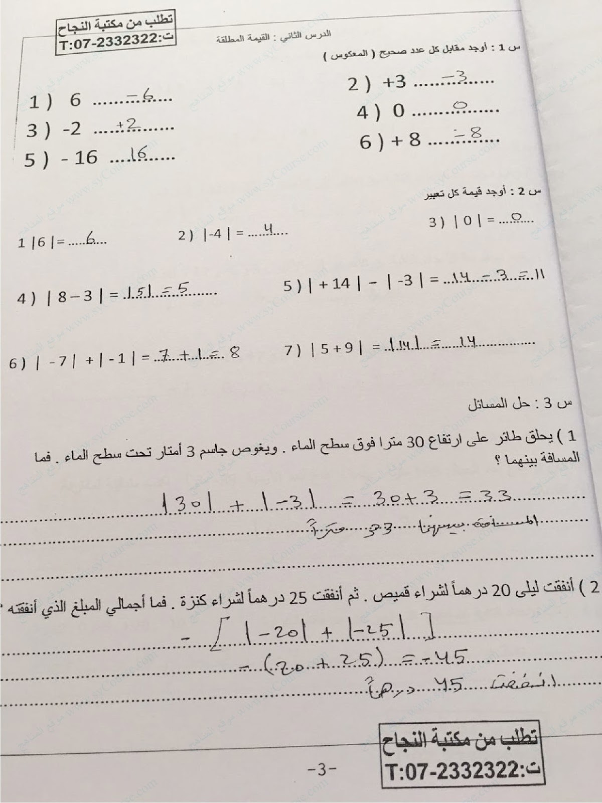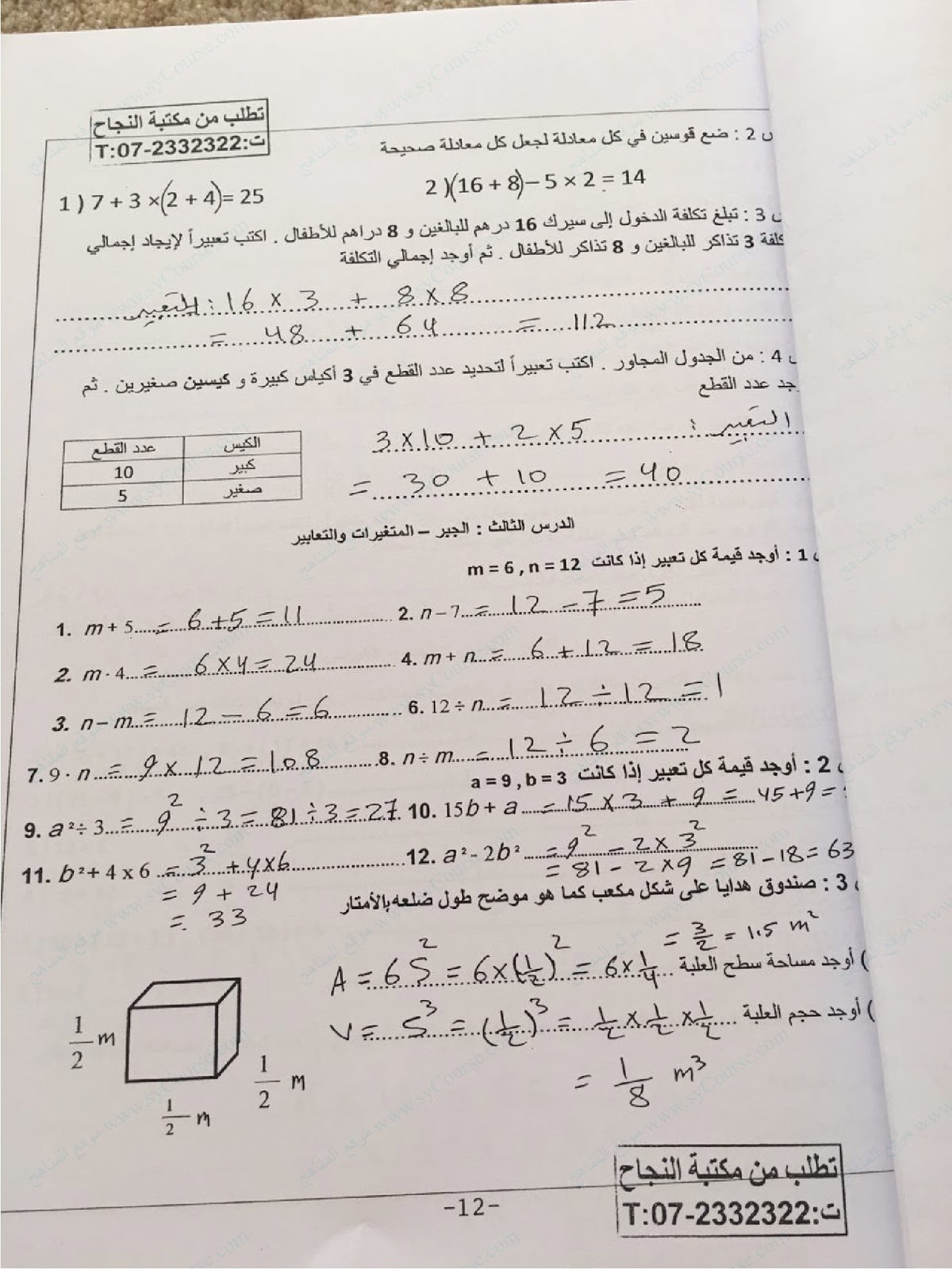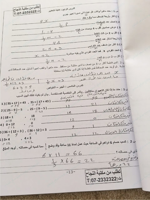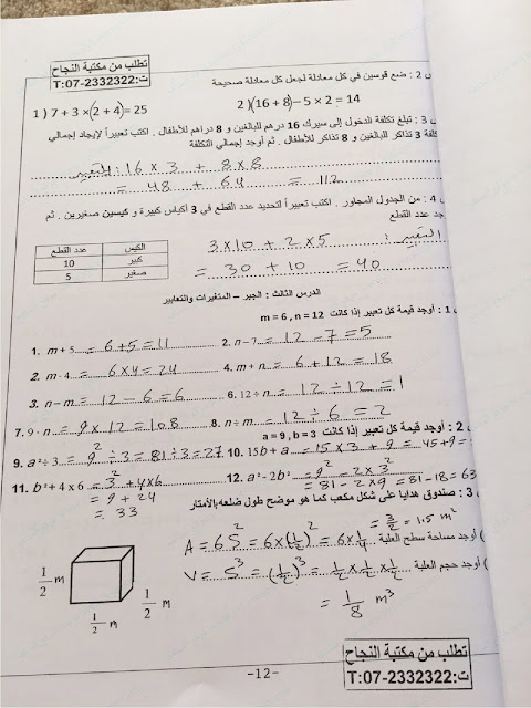 الصف السادس, الفصل الثاني, رياضيات, ملزمة رياضيات محلولة