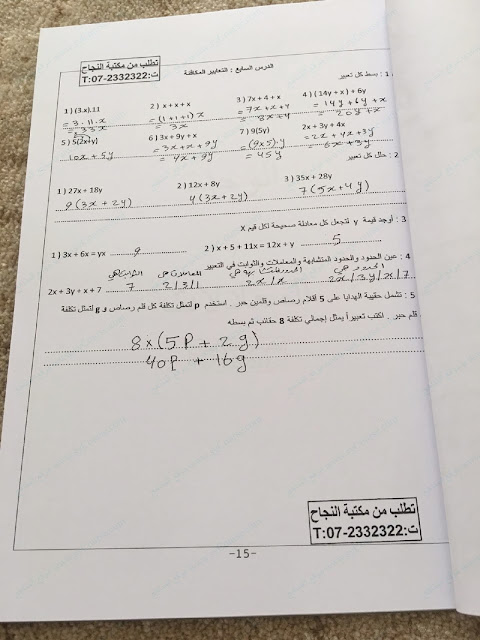 7. عرض بوربوينت حل درس الجبر كتابة التعابير