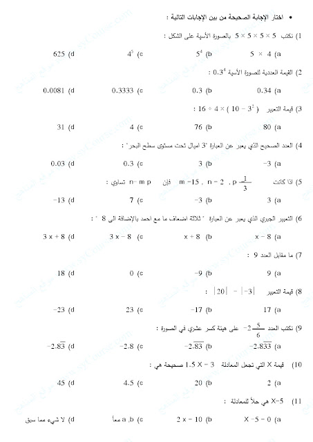 الصف السادس, الفصل الثاني, رياضيات, امتحان تجريبي لنهاية الفصل الثاني