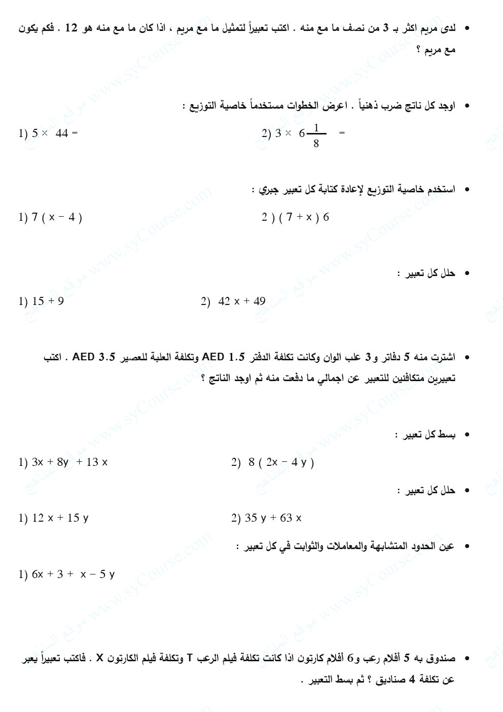 7. عرض بوربوينت حل درس الجبر كتابة التعابير