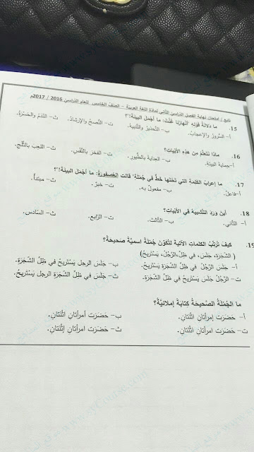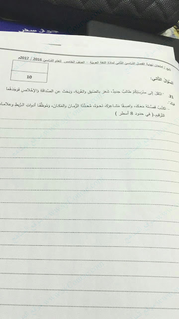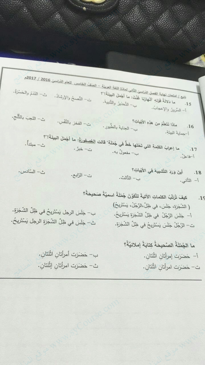 الصف الخامس, الفصل الثاني, لغة عربية, الامتحان الوزاري لنهاية الفصل الثاني من العام الدراسي 2016-2017 للتحميل اتبع الرابط التالي: http://sycourse.com/up/do.php?id=382
