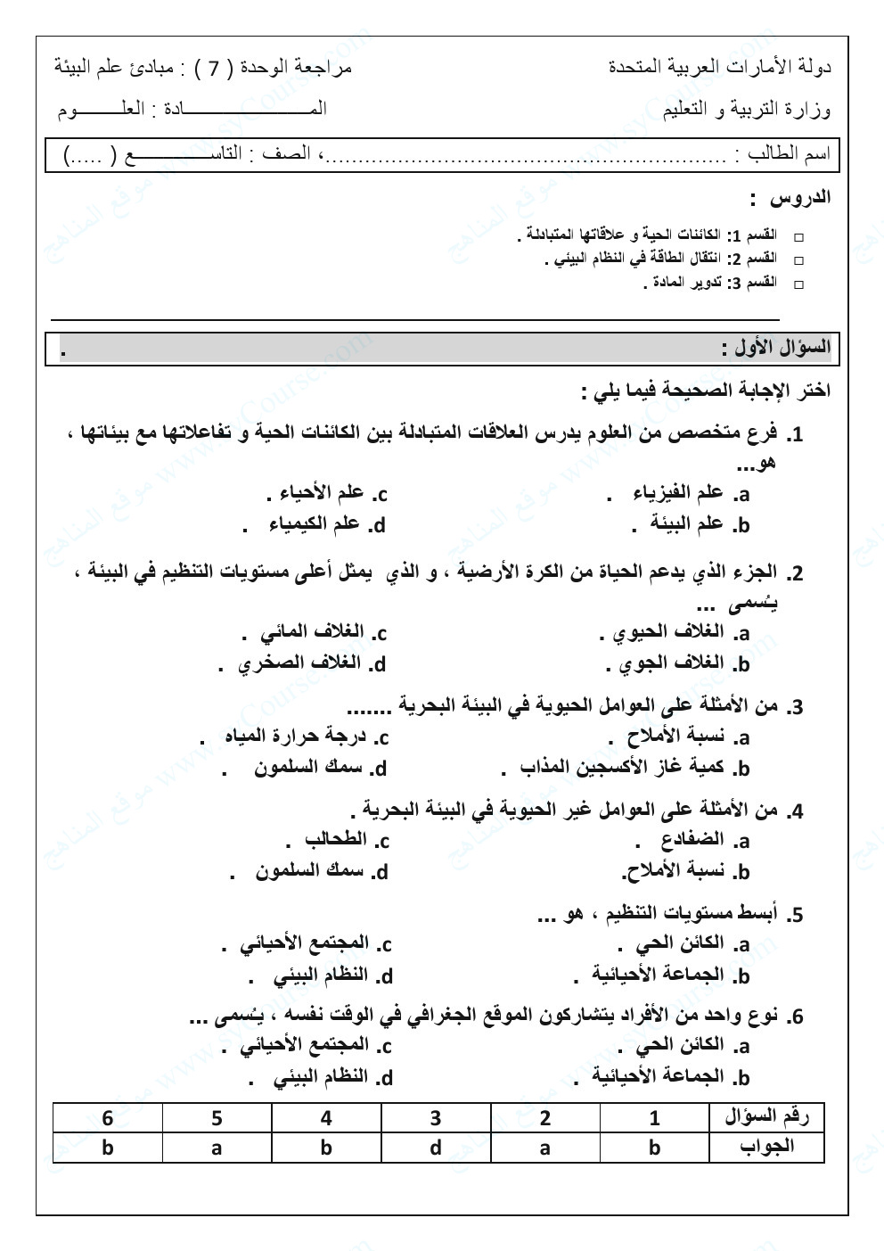 7. أسئلة مراجعة نهائية وفق الهيكل الوزاري منهج انسباير