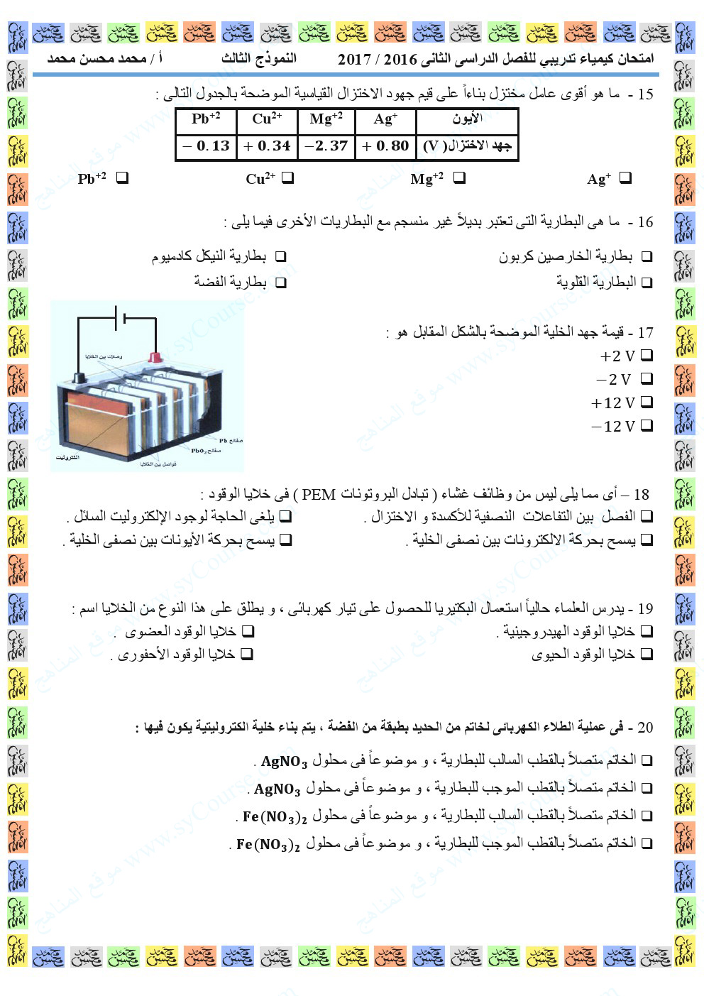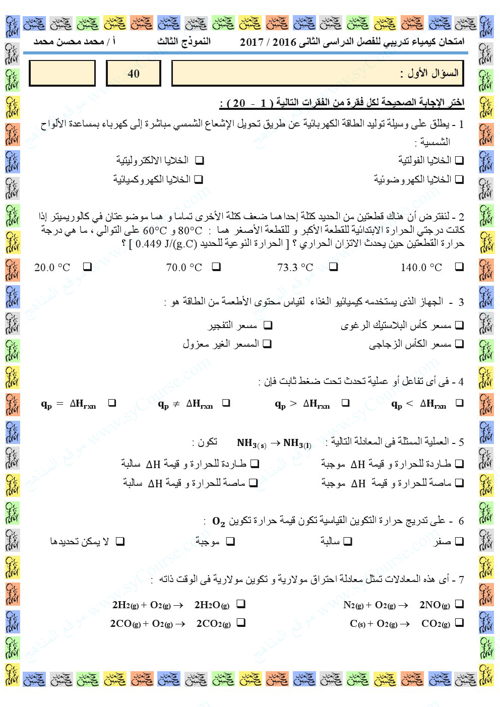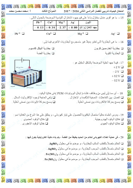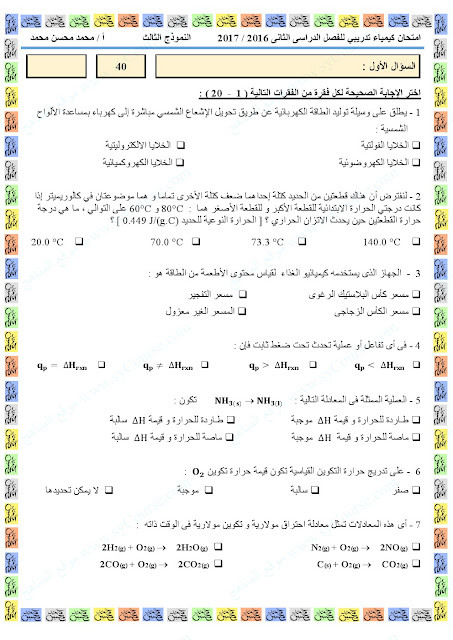 كيمياء نموذج تدريبي لامتحان نهاية الفصل | ||