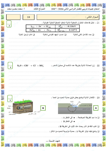 | كيمياء نموذج تدريبي لامتحان نهاية الفصل | ||
