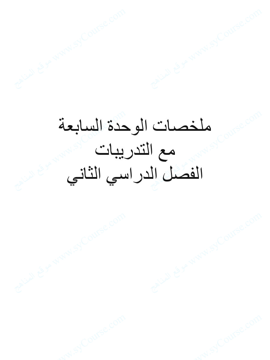 | ملخص الوحدة السابعة مع التدريبات | ||