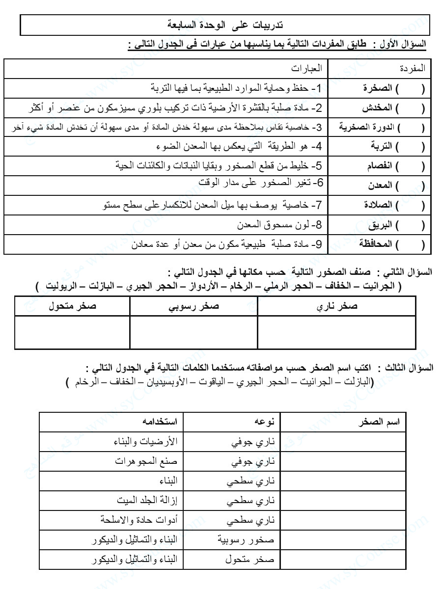 معلومات الملف: الصف الخامس, الفصل الثاني, علوم, ملخص الوحدة السابعة مع التدريبات | ||