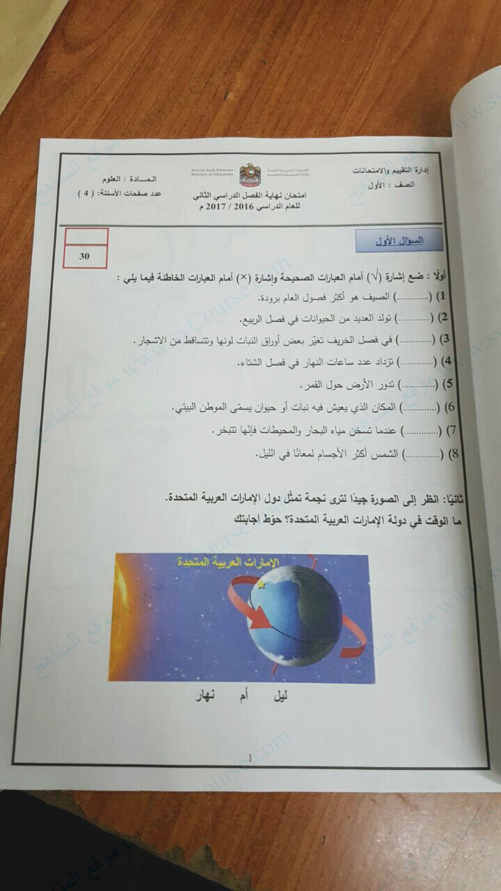 7, علوم, نموذج أسئلة الامتحان النهائي من مدرسة الثميد