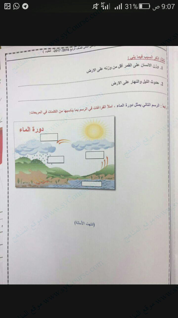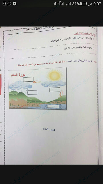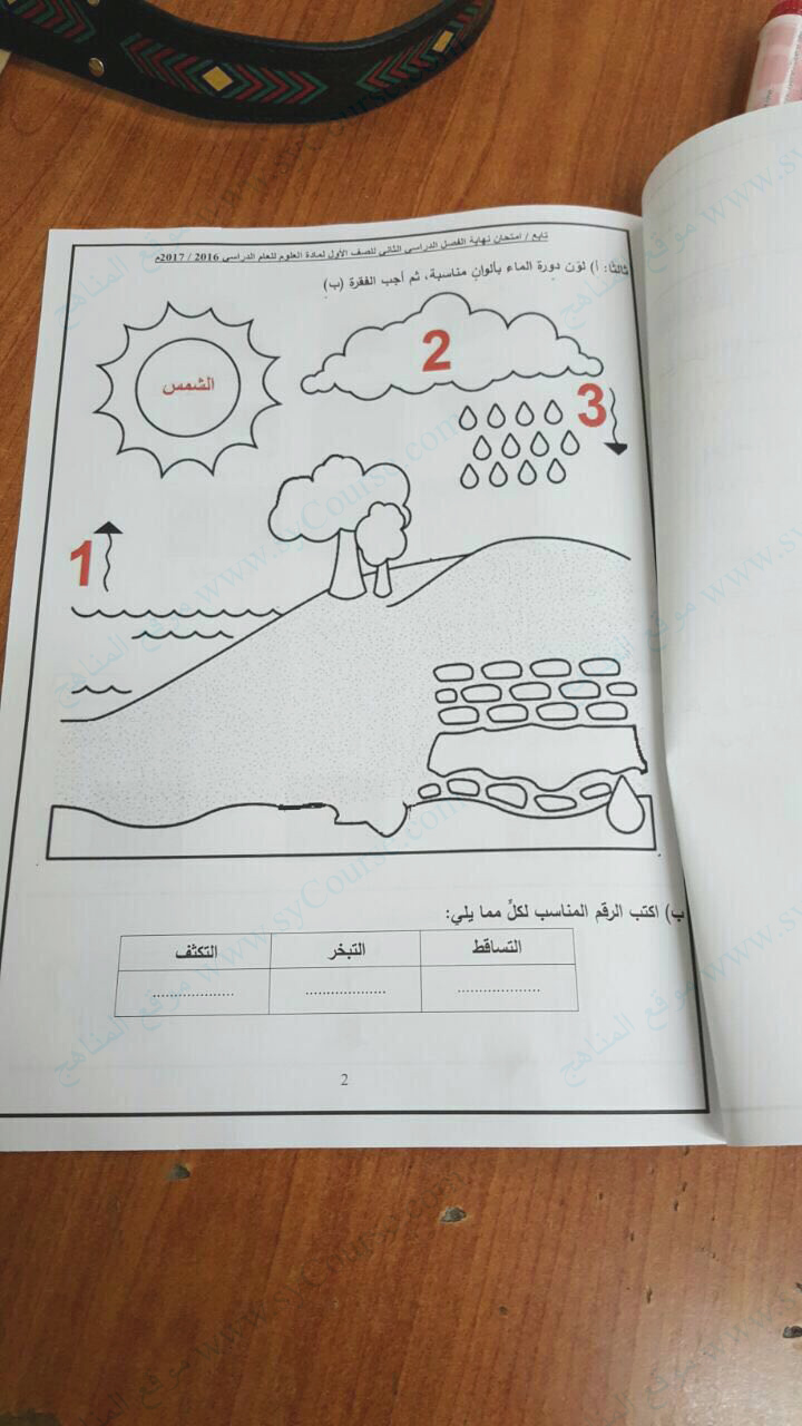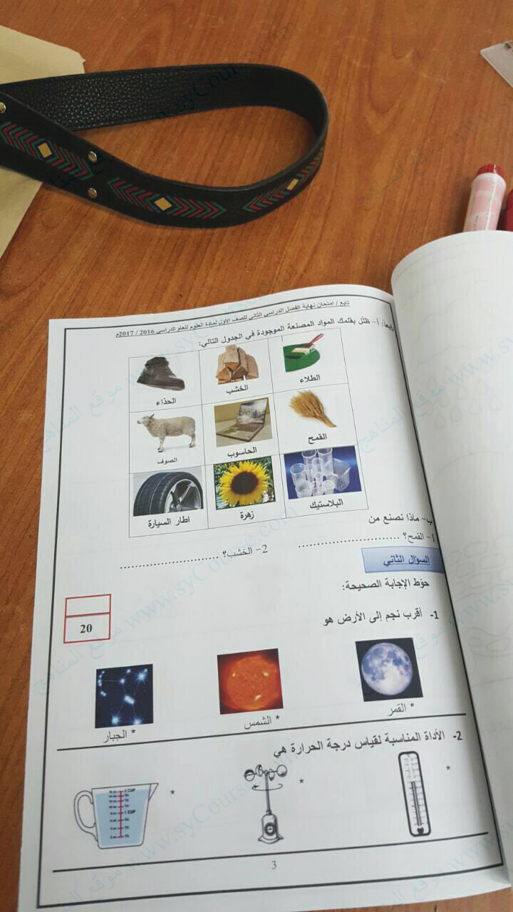 الصف الأول, الفصل الثاني, علوم, أسئلة امتحان نهاية الفصل الثاني من العام الدراسي 2016-2017