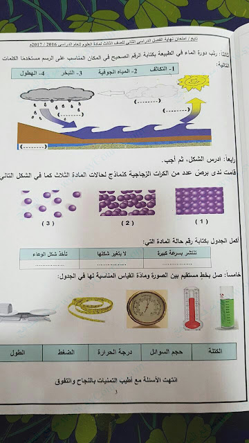 الصف الثالث, الفصل الثاني, علوم, أسئلة امتحان نهاية الفصل الثاني من العام الدراسي 2016-2017 وفق المنهاج الاماراتي