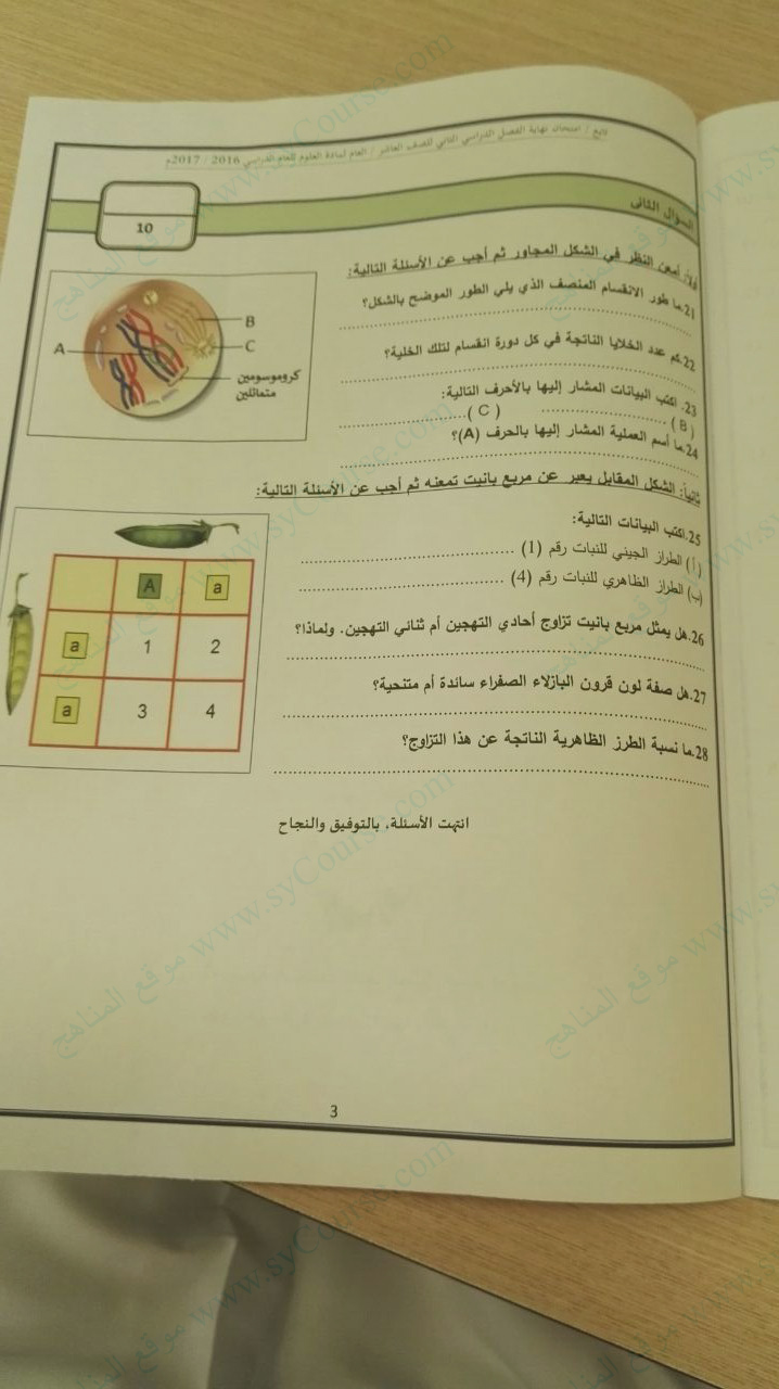 معلومات الملف: الصف العاشر العام, الفصل الثاني, علوم, أسئلة امتحان نهاية الفصل الثاني من العام الدراسي 2016-2017 | ||
