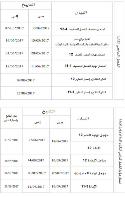 | مواعيد امتحان الفصل الثالث وامتحان المؤجل والإعادة ومؤجل الإعادة 2017 | ||