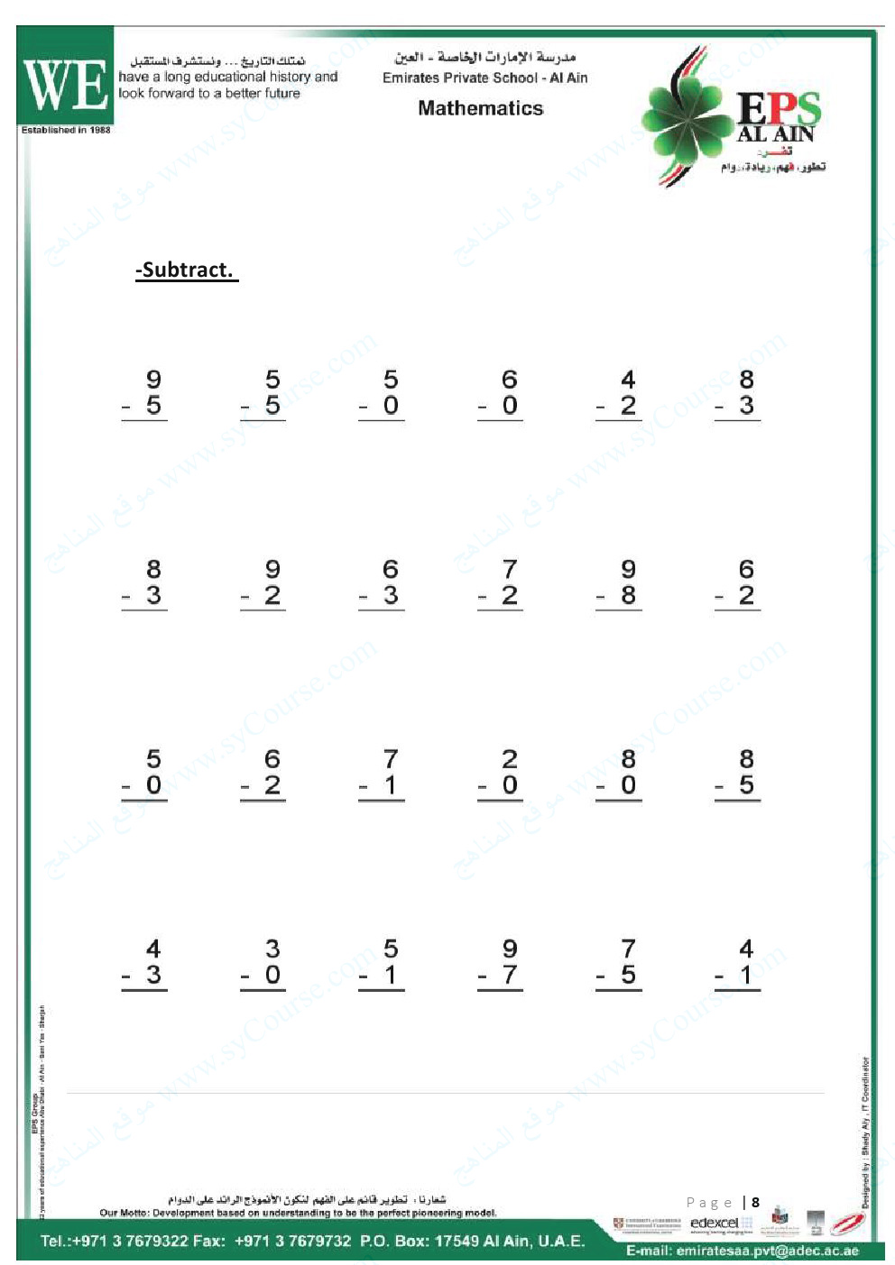 2. الصف الثالث, رياضيات, أوراق عمل مهارات الضرب والقسمة