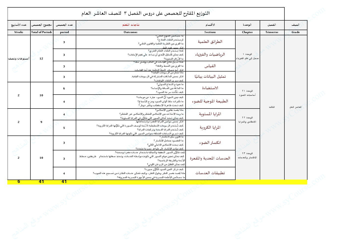 معلومات الملف: الصف العاشر, الفصل الثالث, علوم, مقررات الفصل الثالث للعام الدراسي 2016-2017 (عام ومتقدم) | ||