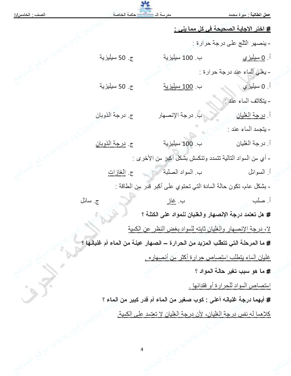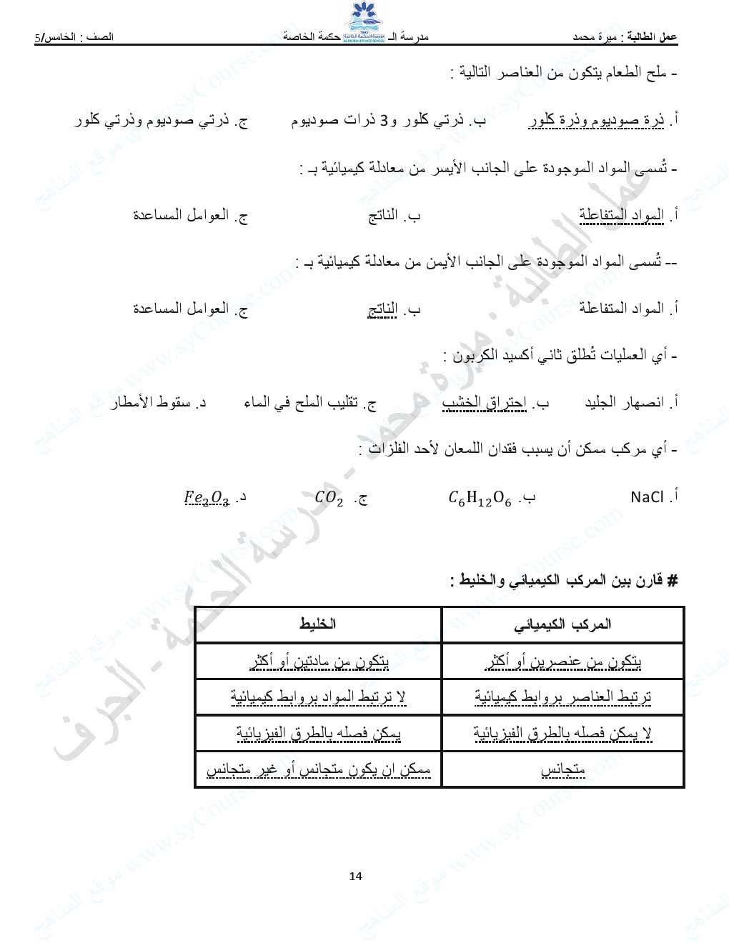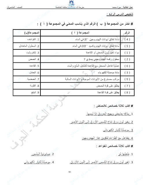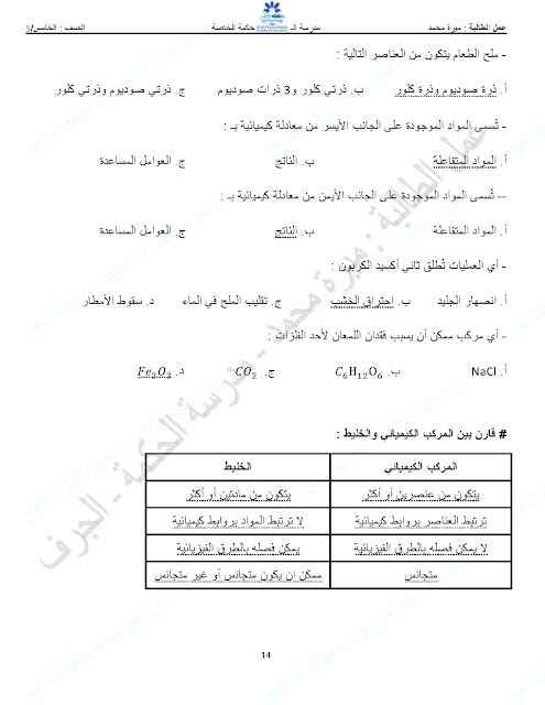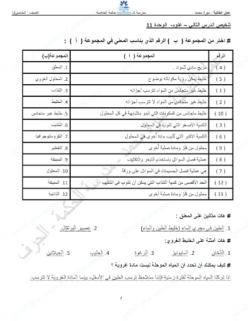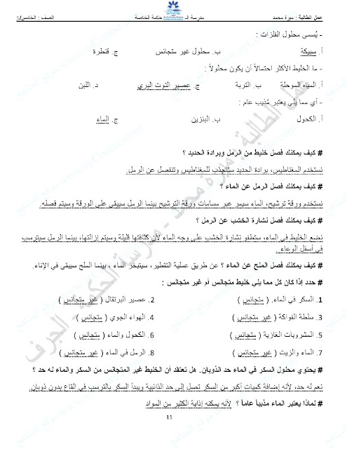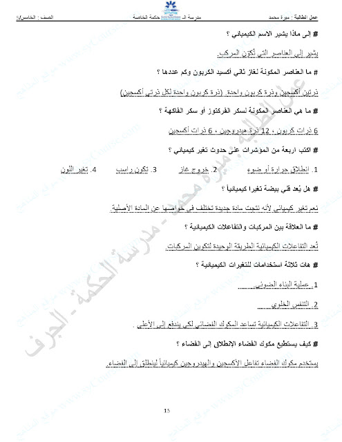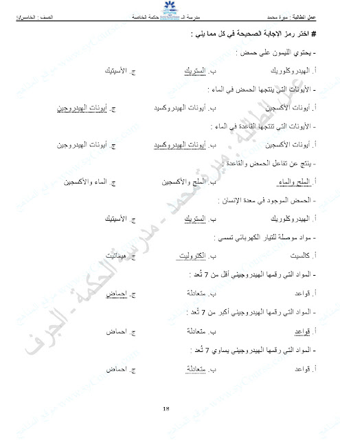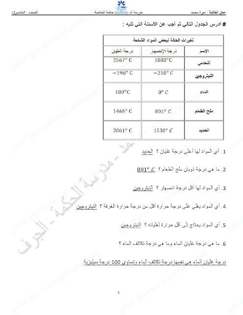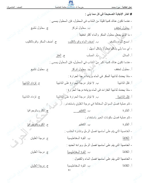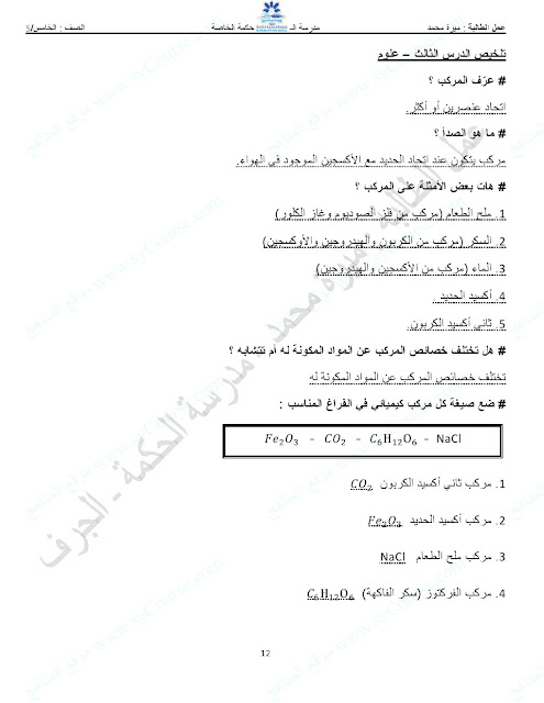 معلومات الملف: الصف الخامس, الفصل الثالث, علوم, أوراق عمل أول 4 دروس مع الإجابات | |||